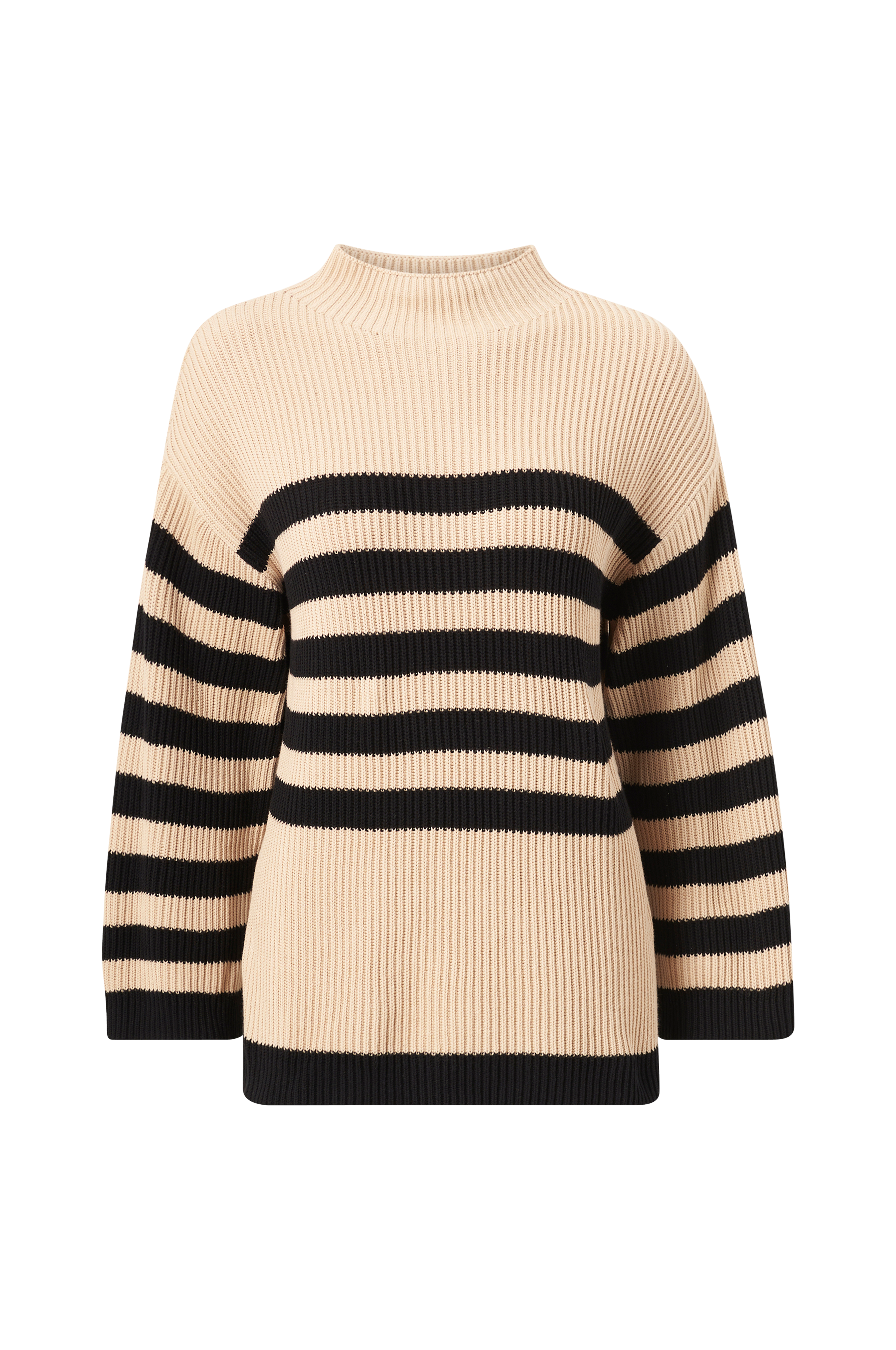 • Strikket trøje i bomuld• Ståkrave• Noget længere model• Slidser i siderne