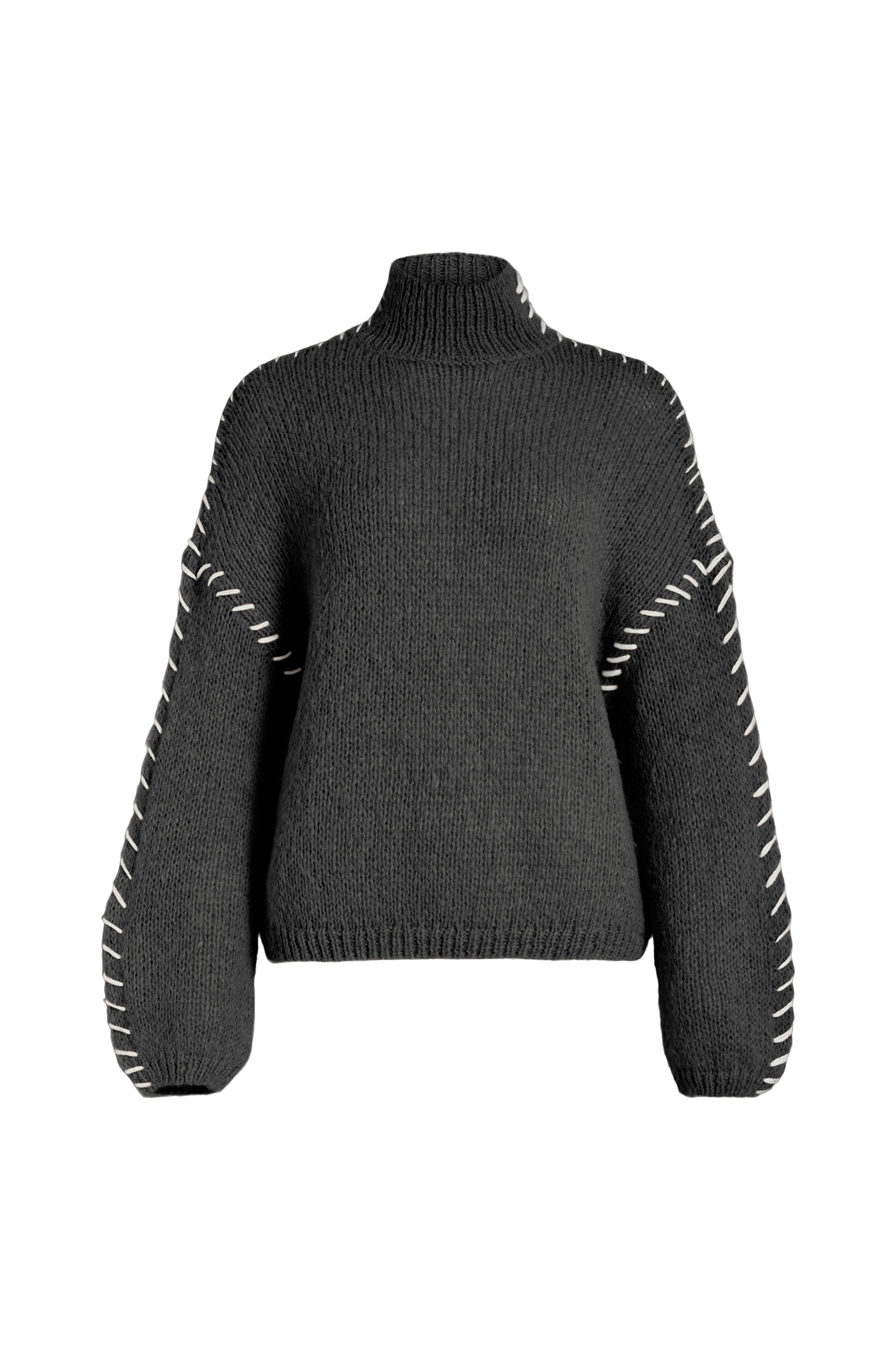 • Blød, løststrikket kvalitet• Høj, ribstrikket halsudskæring• Nedsænkede skuldre• Løs pasform
