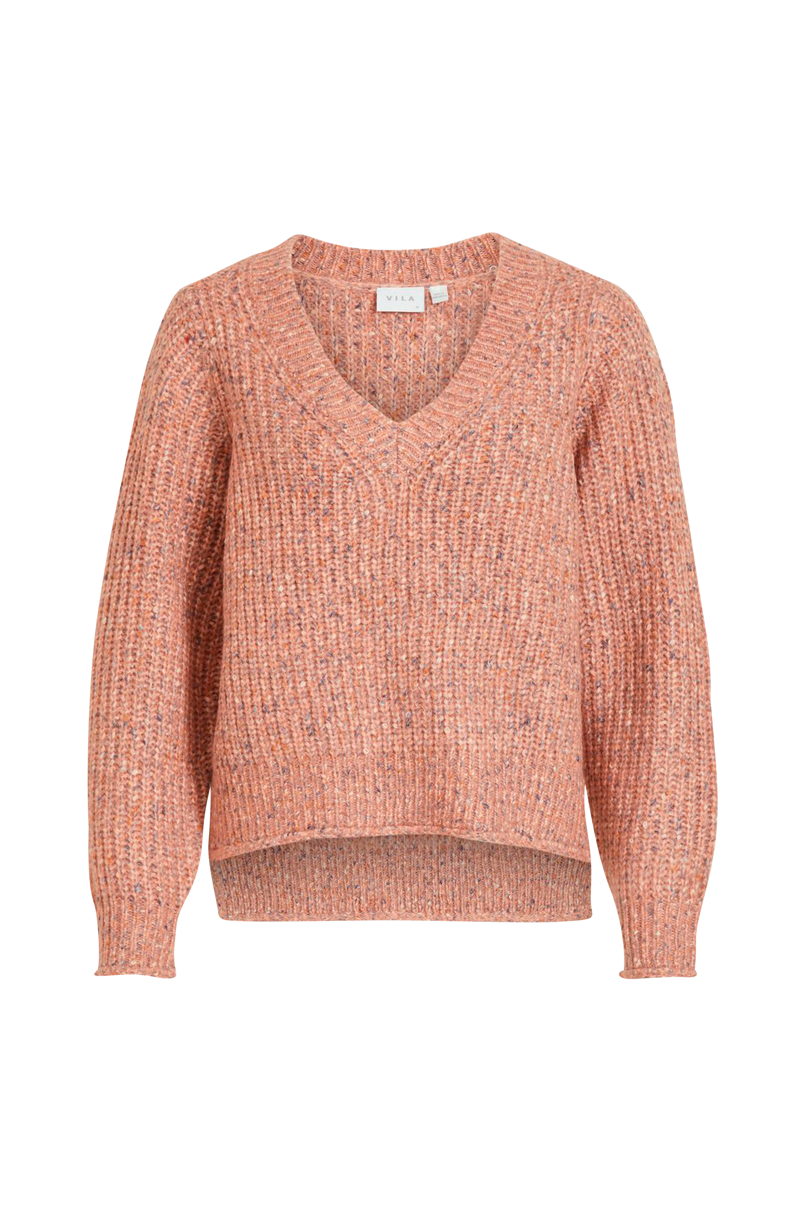 Trøje viFresh Knit V-neck L/S Top fra Vila i blød, groftstrikket kvalitet med meleret effekt. Ribstrikket V-udskæring foran og ribstrikket ærmekant. Markant forskel på i længde mellem for- og bagstykke, hvor forstykket er kortere. Kanten forneden er lige skåret med sideslids.