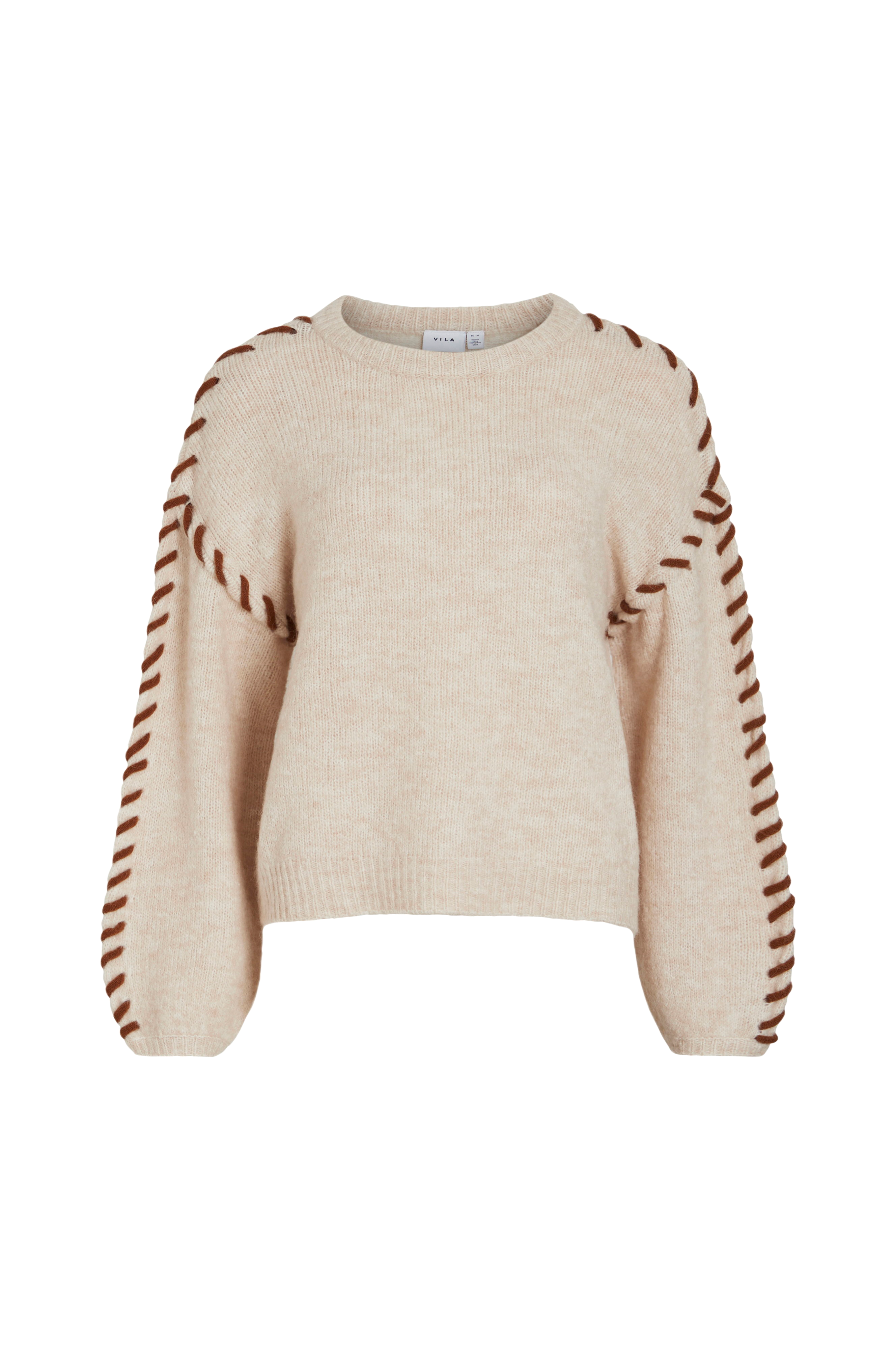 • Lige, glatstrikket model med matchende broderier over sømmene• Halsudskæring med ribkant• Nedsænket skulder• Langt ærme med smal ribstrik ved manchetterne• Ribstrikket kant nederst