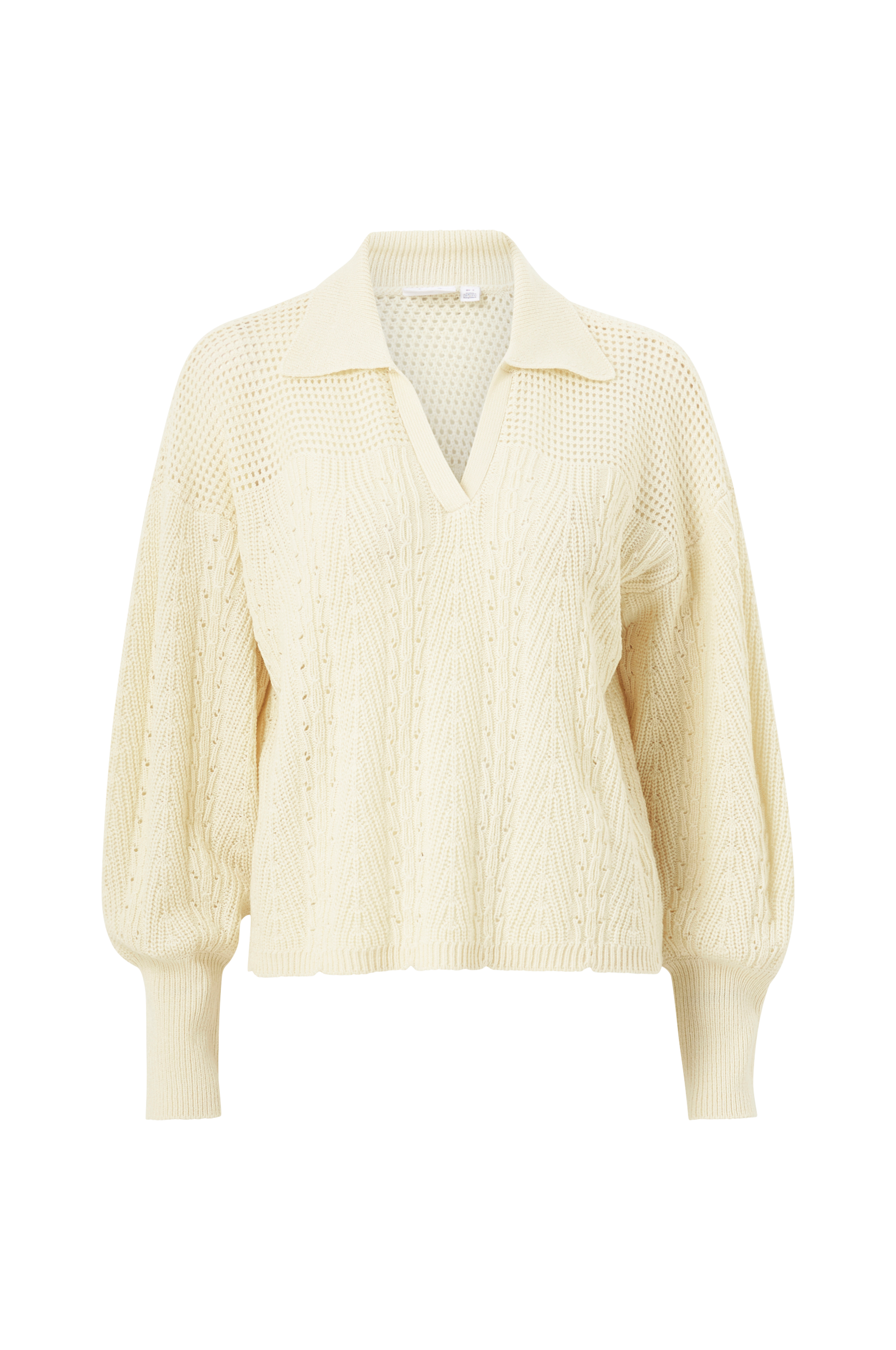 • Strukturstrikket trøje• V-udskæring med krave• Rynkede skuldre• Produktet indeholder genindvundet materiale, som genbruges for at reducere mængden af affald samtidigt med at der ikke anvendes nye ressourcer.