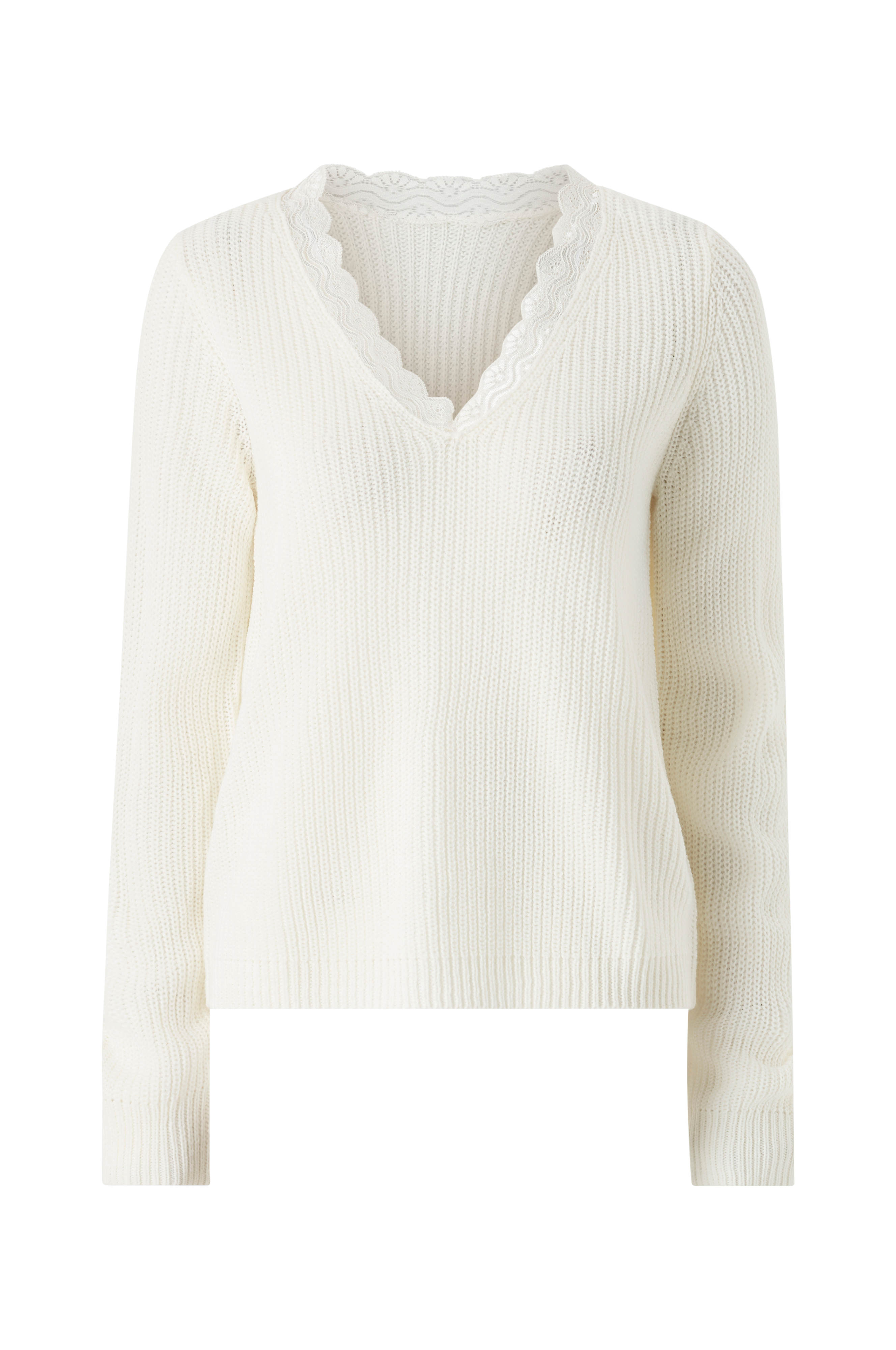 • Strikket trøje• V-udskæring med blonde