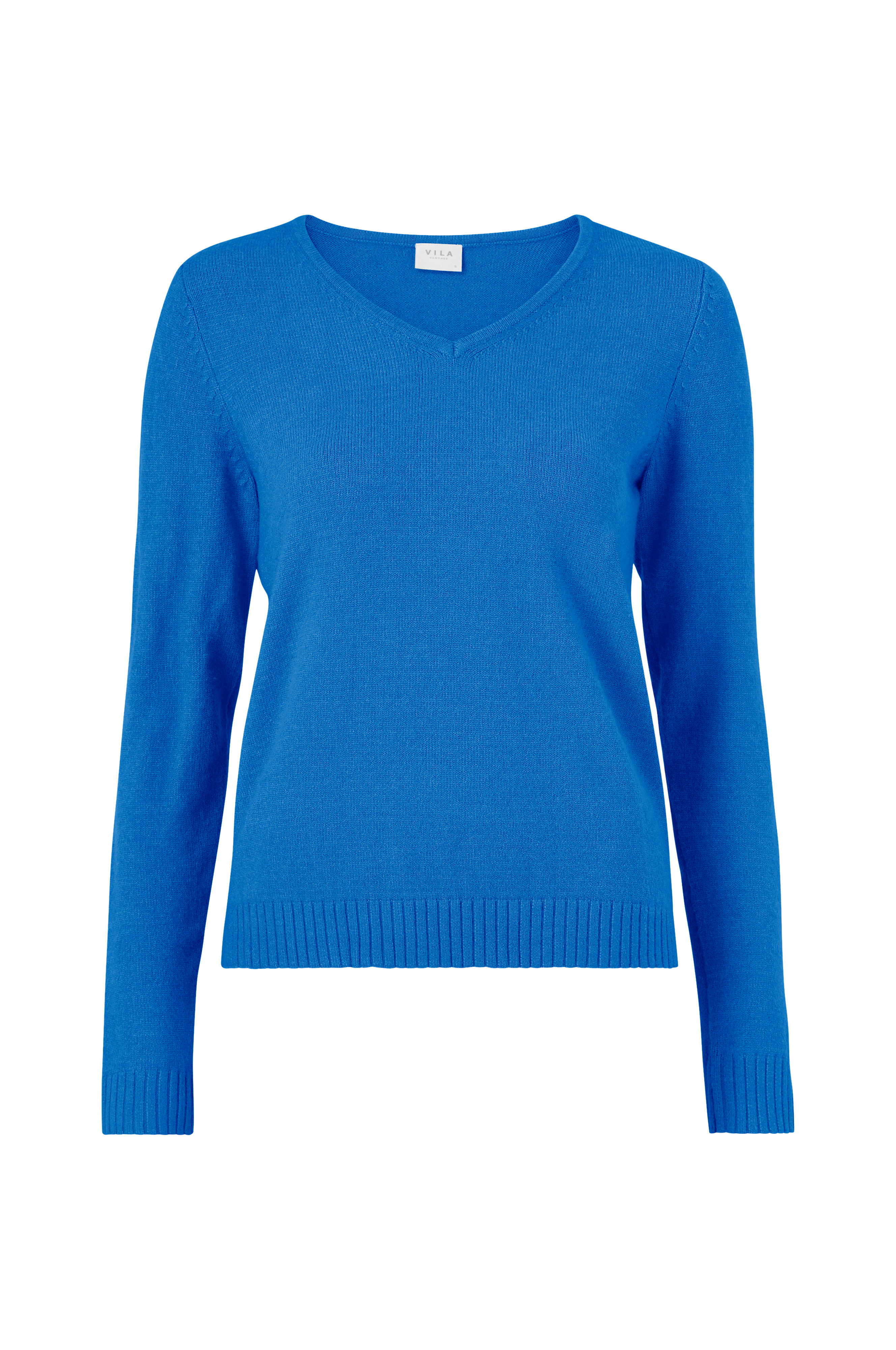 Trøje viRil V-neck Knit Top fra Vila i blød, fintstrikket kvalitet med ribkant forneden og i ærmekant. V-formet model. Længde 67 cm i str. M.