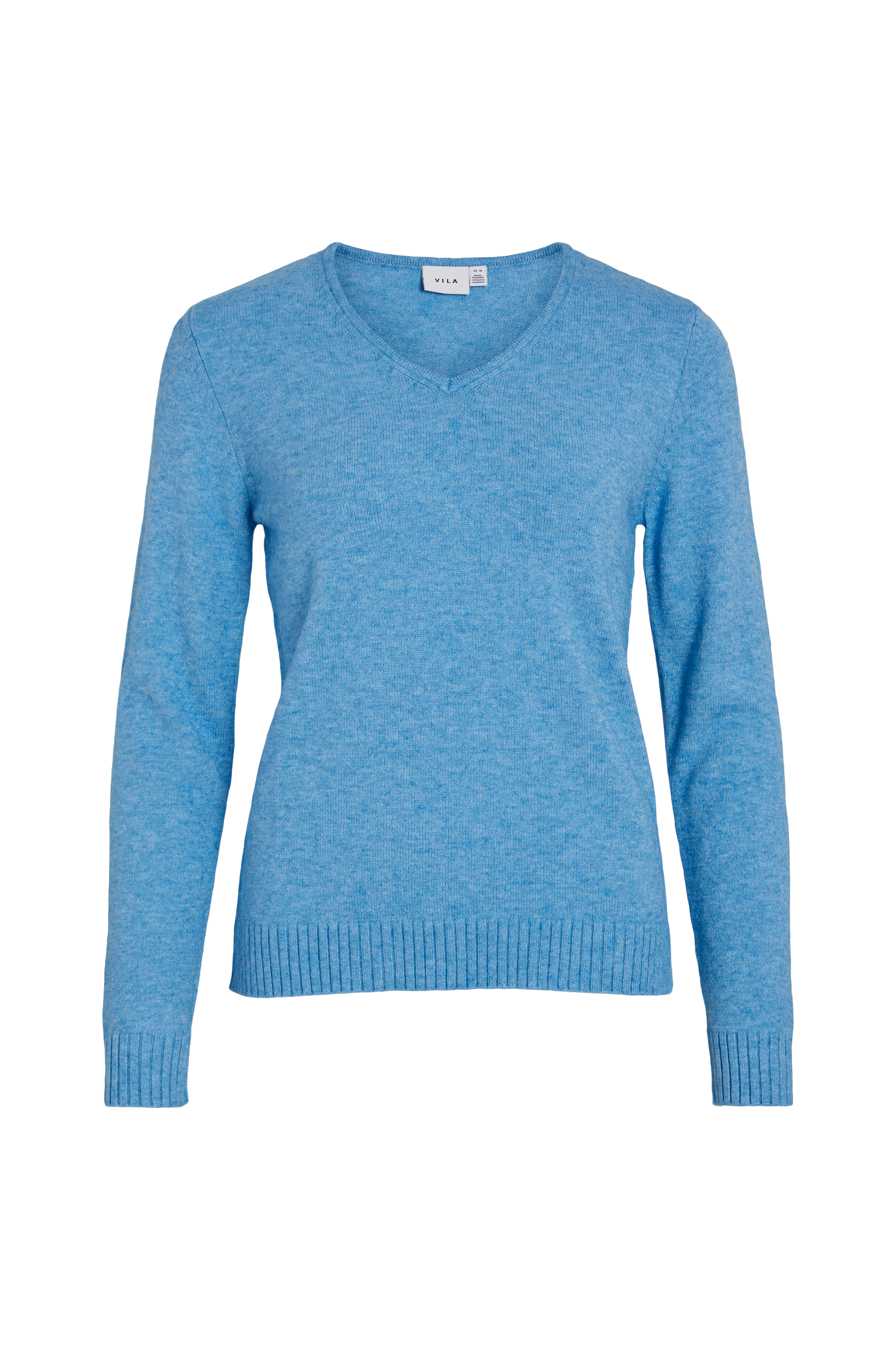 Trøje viRil V-neck Knit Top fra Vila i blød, fintstrikket kvalitet med ribkant forneden og i ærmekant. V-formet model. Længde 67 cm i str. M.