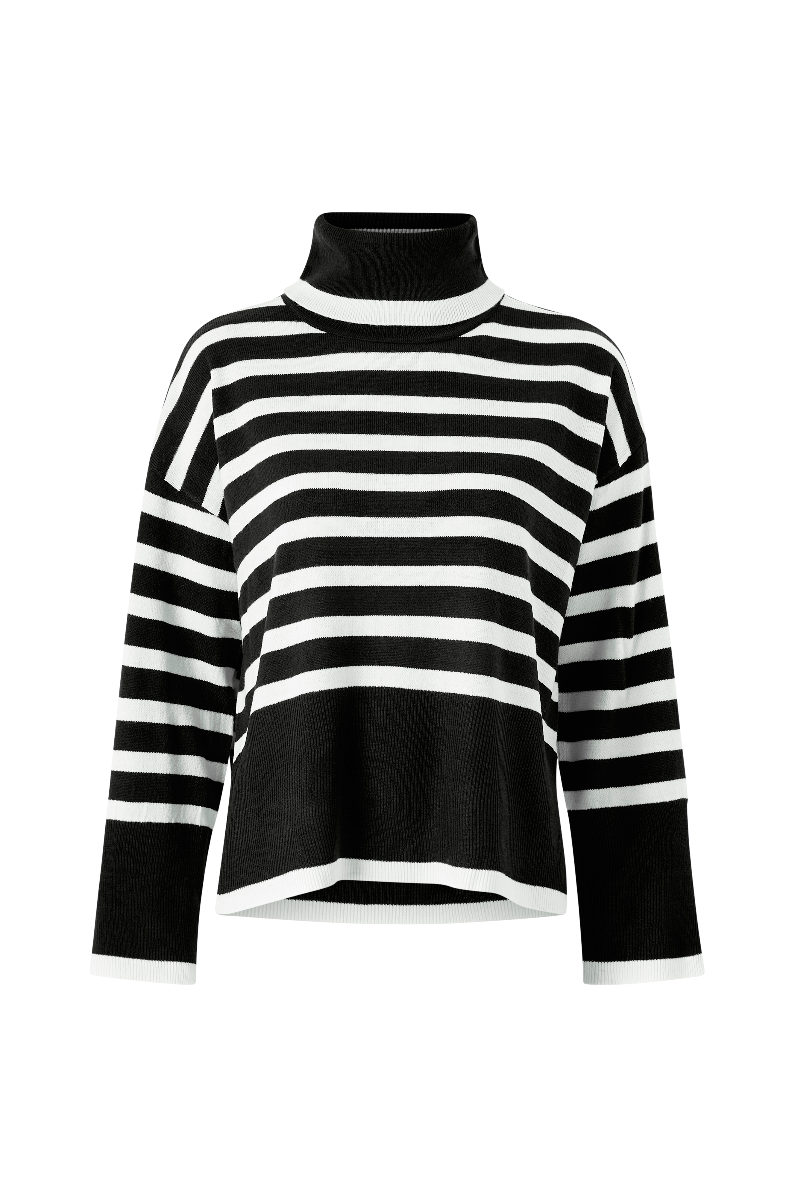 • Fintstrikket trøje med turtleneck• Firkantet pasform• Nedsænkede skuldre• Brede ærmer
