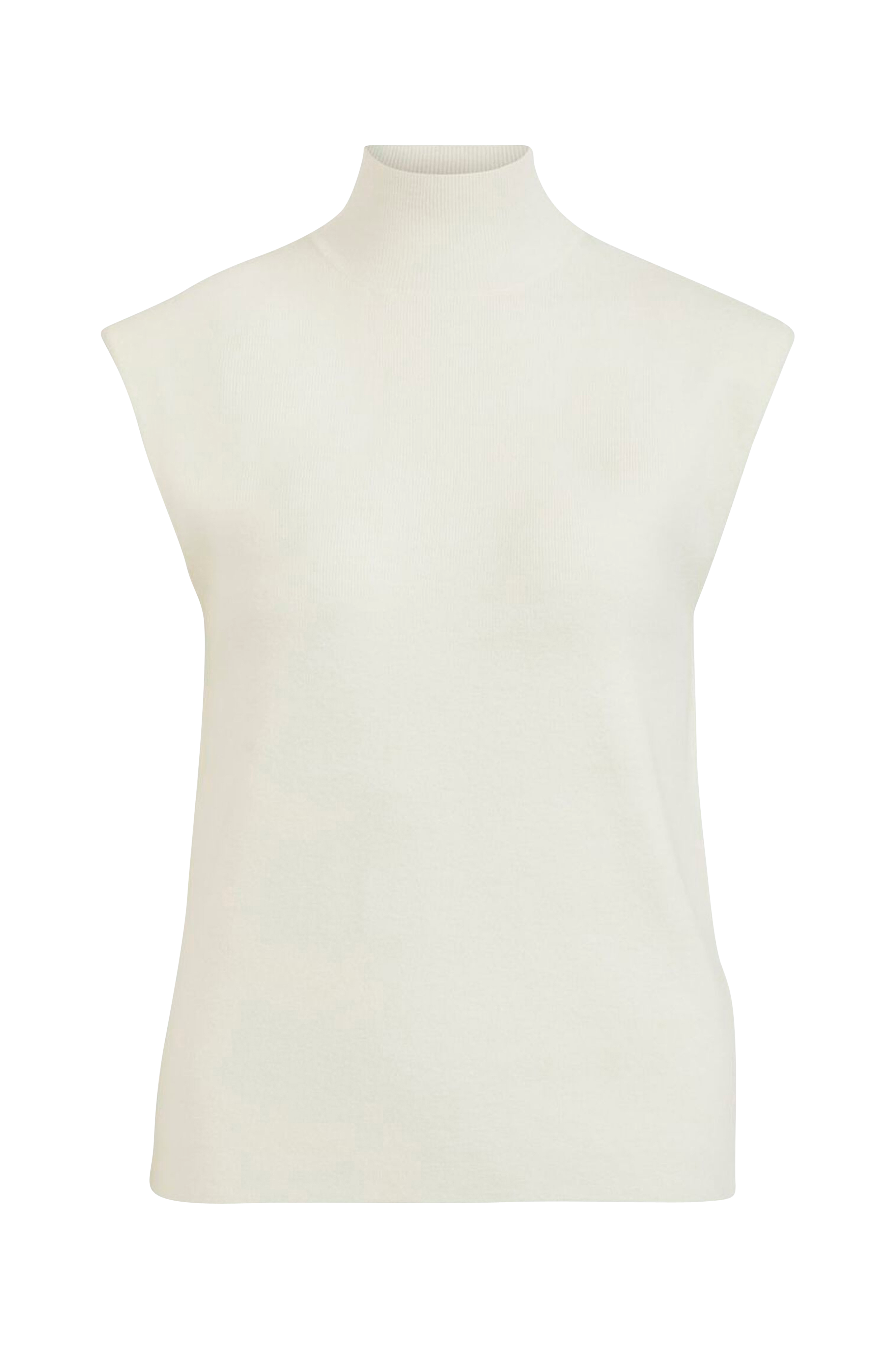 Finstrikket vest med ribbet standkrave og vatterede skuldre som giver en defineret form. Blød kvalitet.