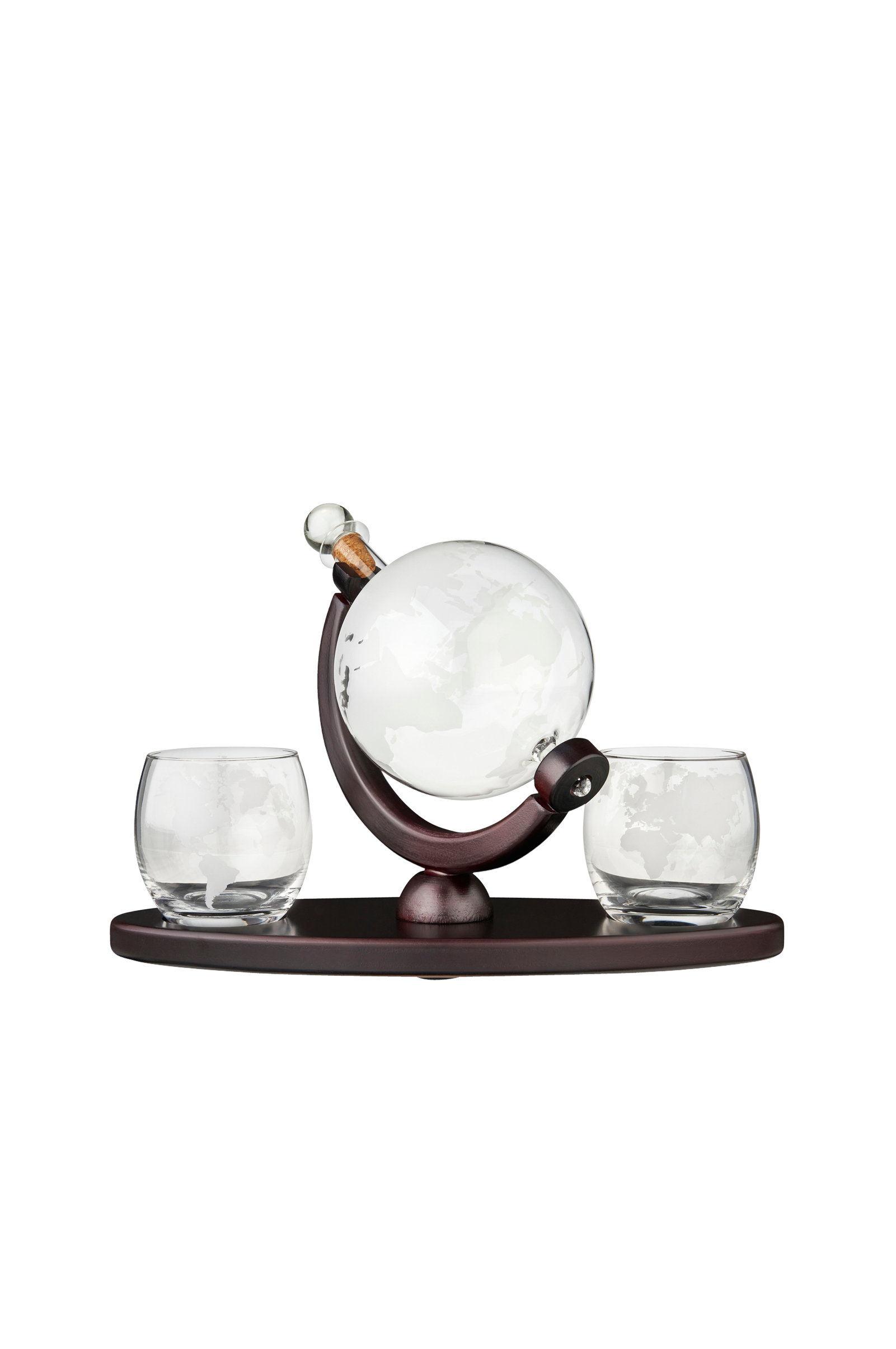 Globe-karaffel- og whiskytumblersættet er den perfekte måde at nyde eksklusiv spiritus med stil. Dette slående sæt er ætset med verdens kontinenter, hvilket skaber et smukt frostet look, der perfekt viser væsken indeni. Hvert glas har subtile kurver, der hjælper med at indfange og koncentrere aromaen for en vidunderlig smagsoplevelse.