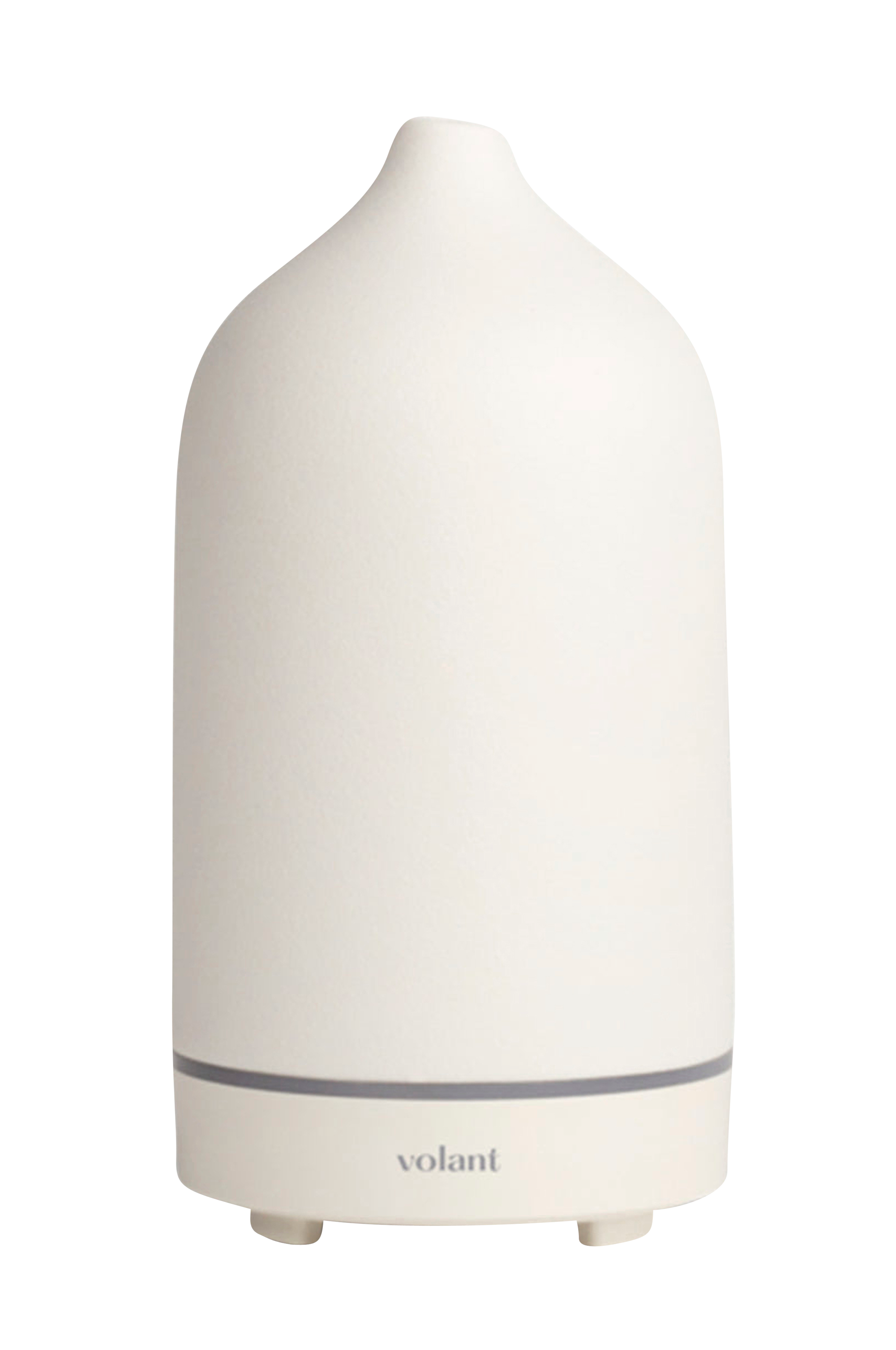 Volants håndlavede diffuser i sten er minimalistisk og elegant. Den hjælper med at sprede æteriske olier rundt i dit hjem. Den keramiske overflade i mat hvid farve er Volants mest populære diffuser til æteriske olier. Diffuseren vil uden tvivl passe ind i dit hjem med sit rene og tidløse design.