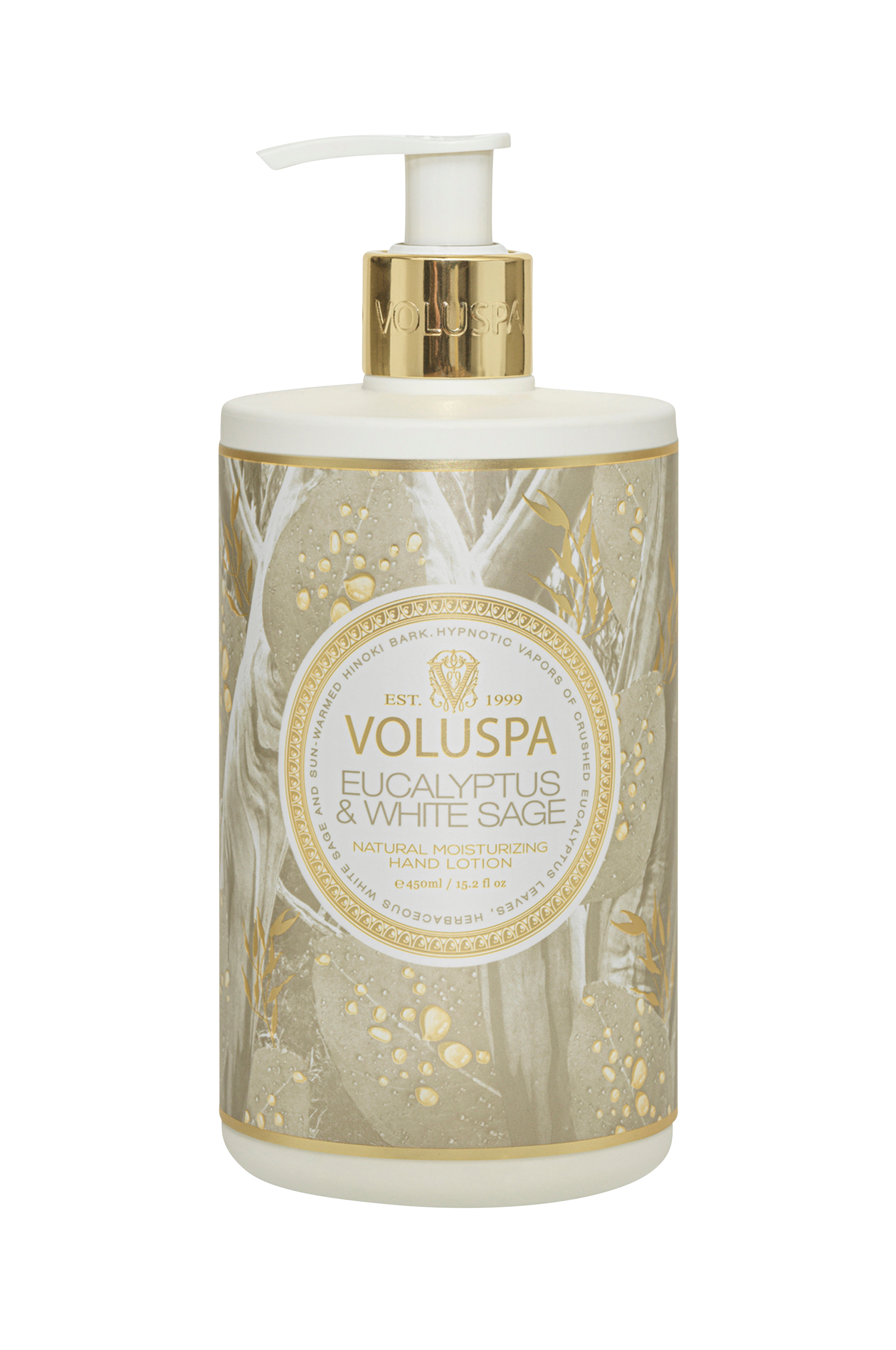 Håndlotion med duft af krydret salvie, eukalyptus, kardemomme og solvarm bark fra hinoki. 450 ml.