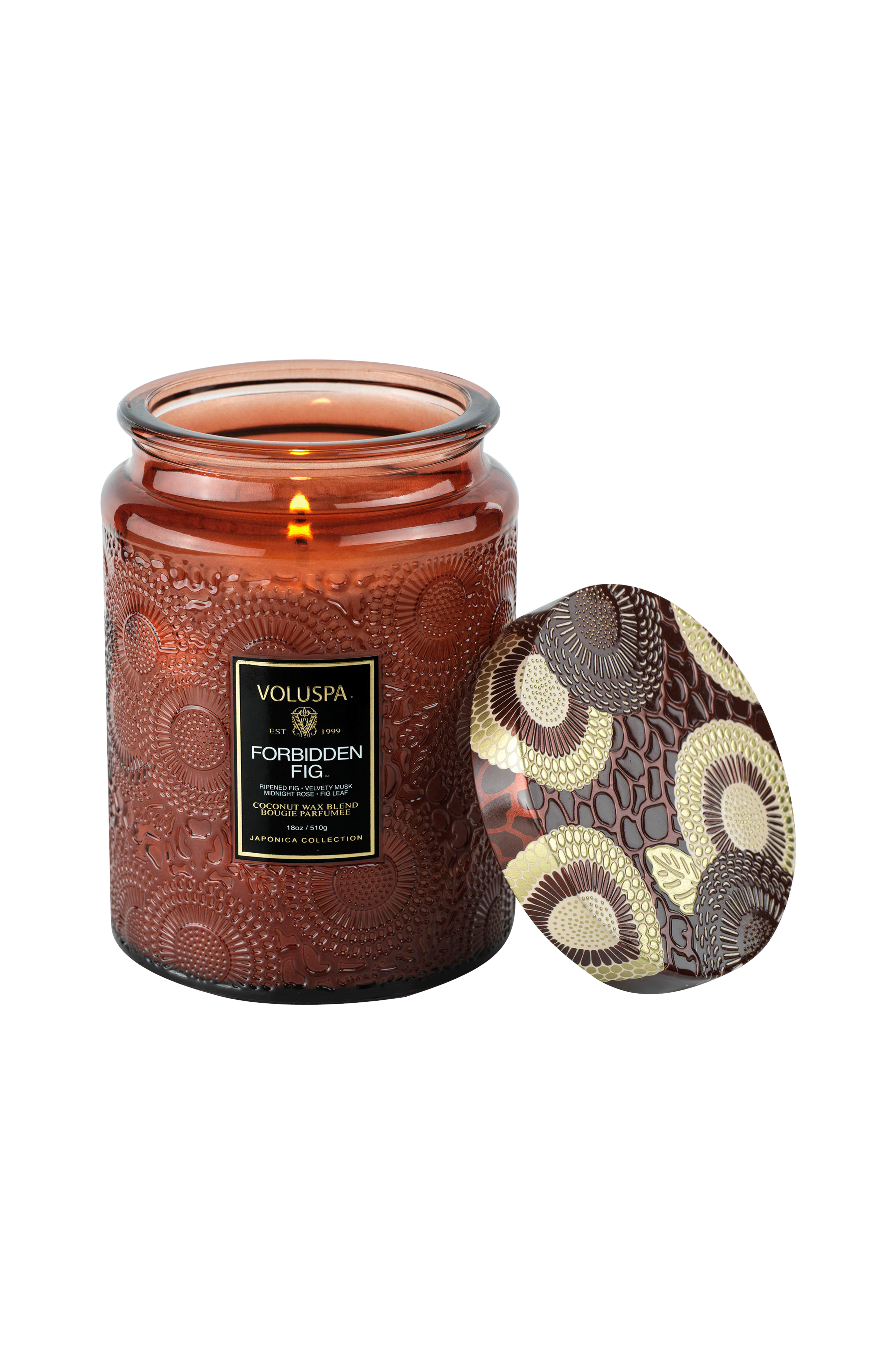 Voluspa Forbidden Fig- Large Embosser Glass Jar Candle 100H