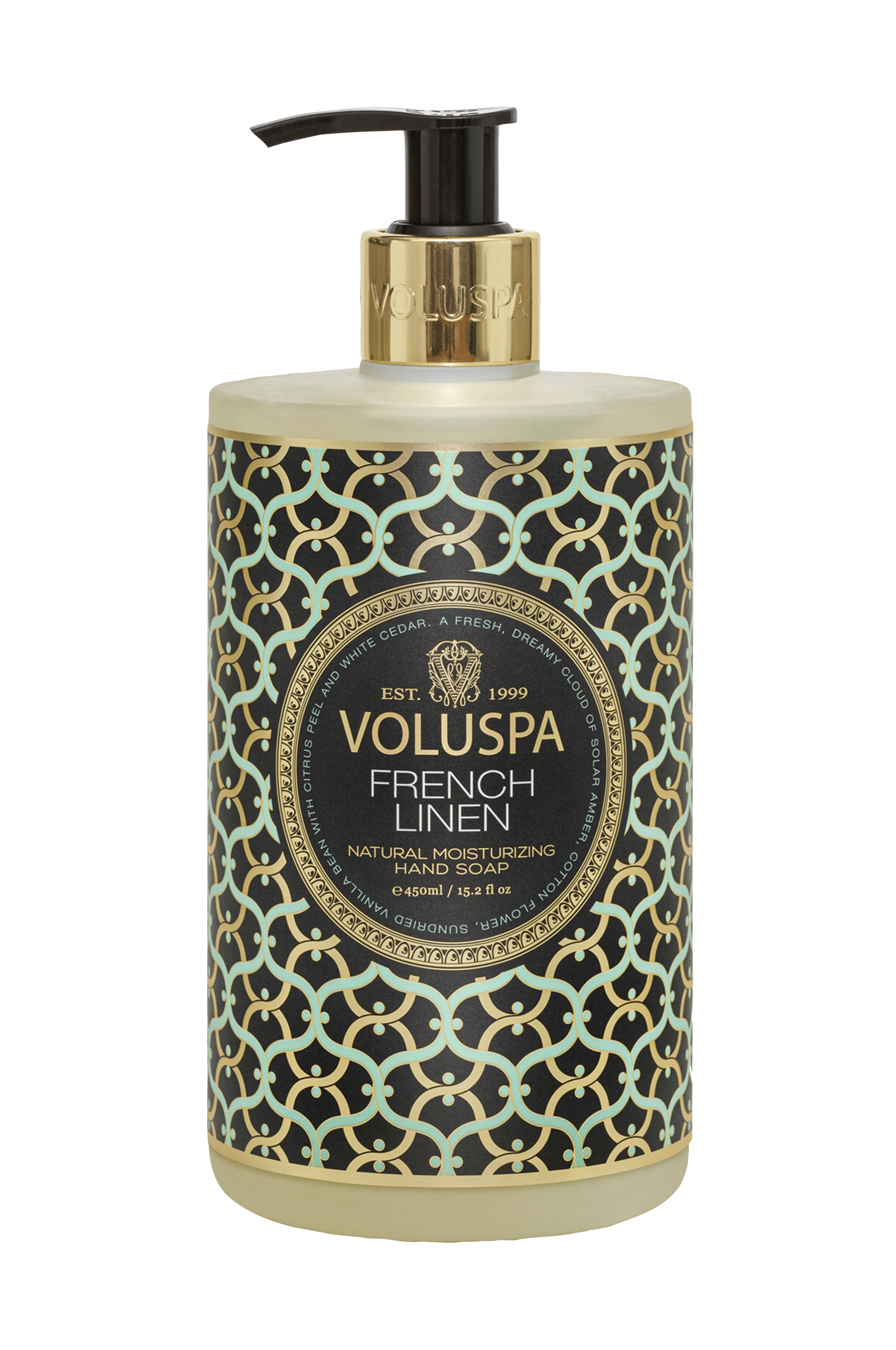 Håndsæbe med en frisk duftkombination af bomuldsblomst, rav, soltørret vaniljestang, citrusskal og hvid cedertræ. 450 ml.