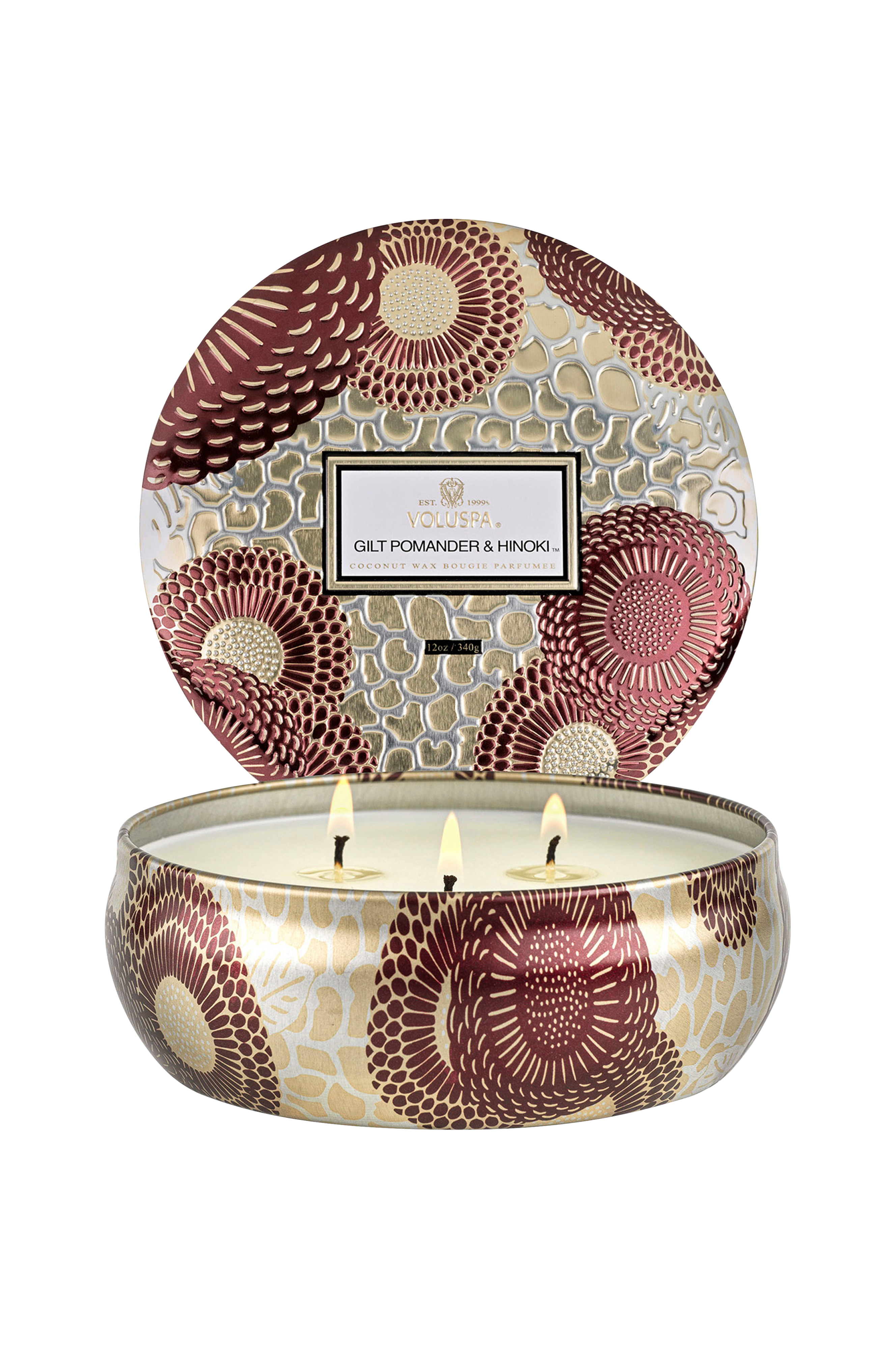 Noter af gylden krydret pomander, kristtornbær, kardemomme og japansk hinoki-bark.