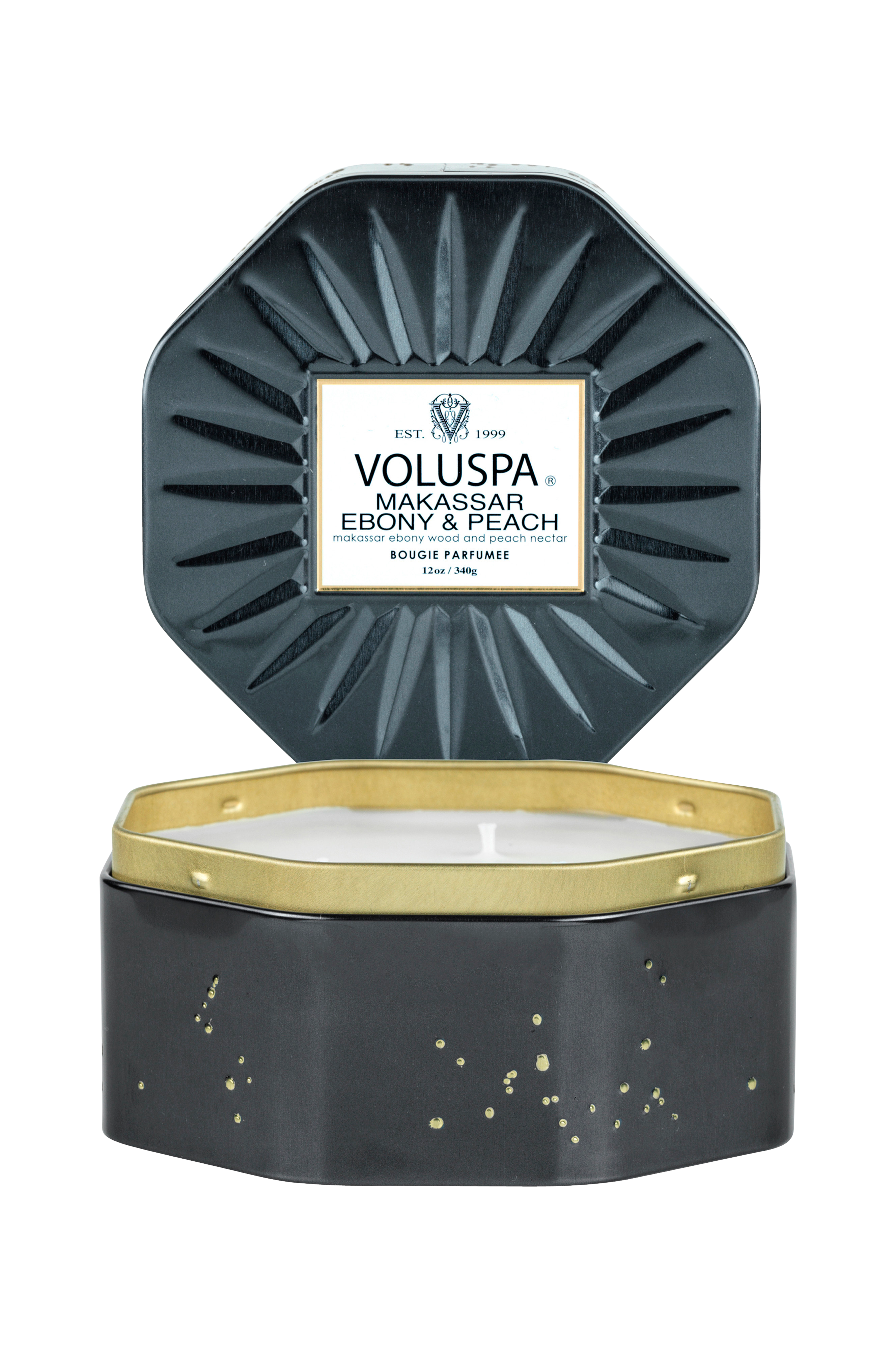 Voluspa Octagon Tin Candle 40Tim Makassar Ebony & Peach