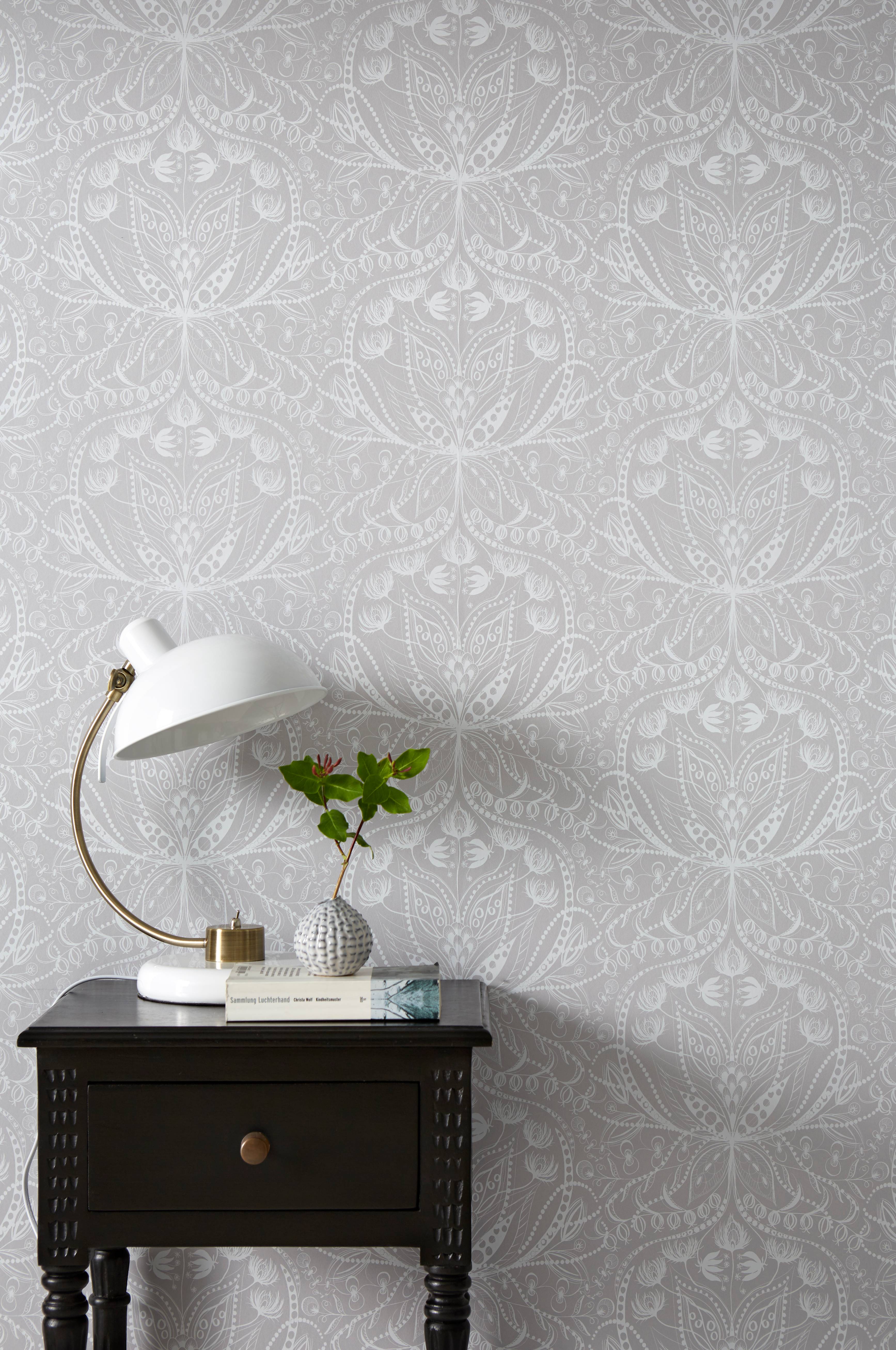 Tapet i non-woven materiale. Hver rulle er 10,05 m. Bredde 53 cm. Mønsterrapport 26,5 cm. Made in Sweden.