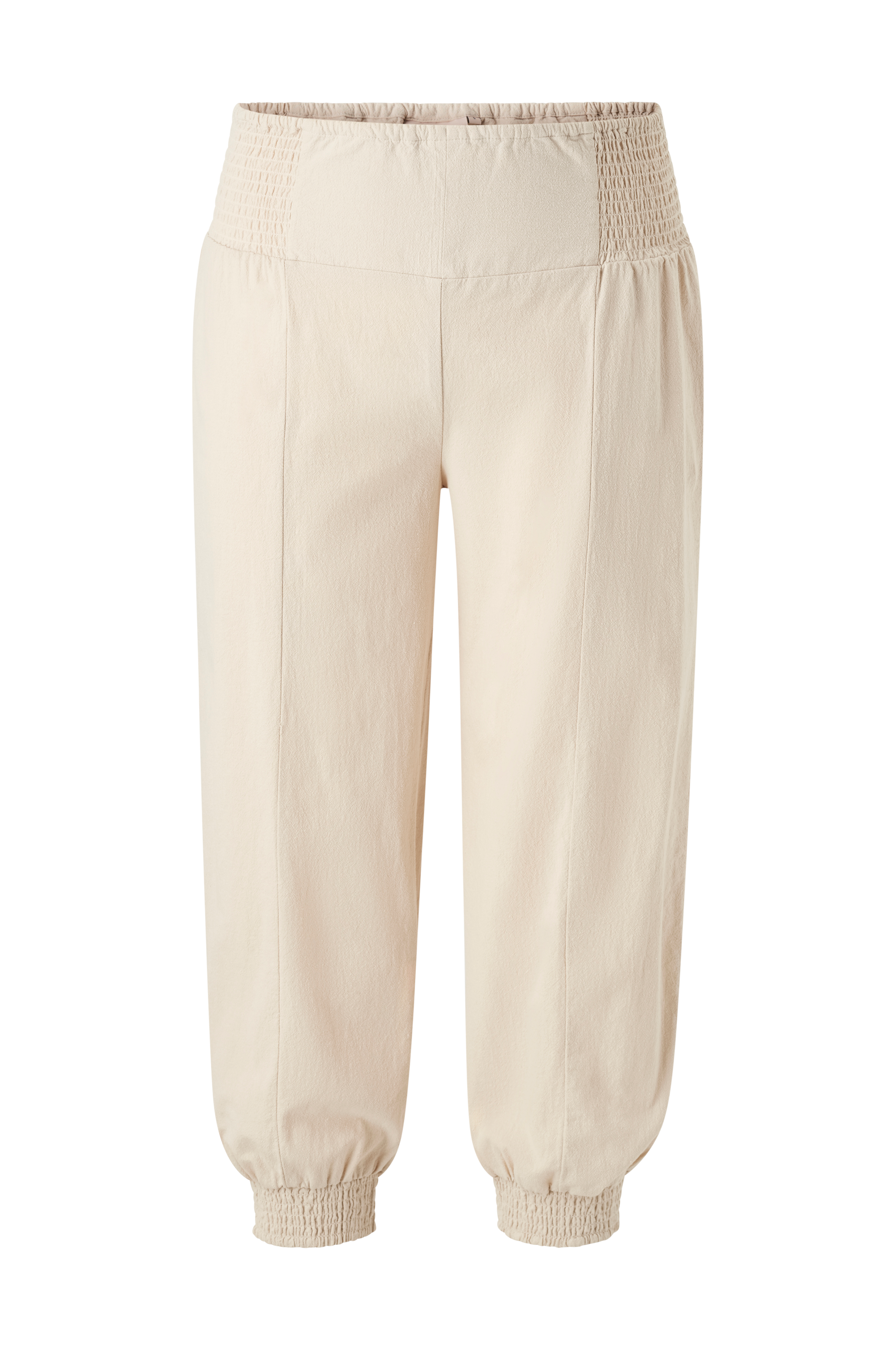 • 3/4 lange bukser med smock ved enden af benene• Bred smock ved taljen• Løs pasform• Store størrelser• Indre benlængde: 61 cm i størrelse S