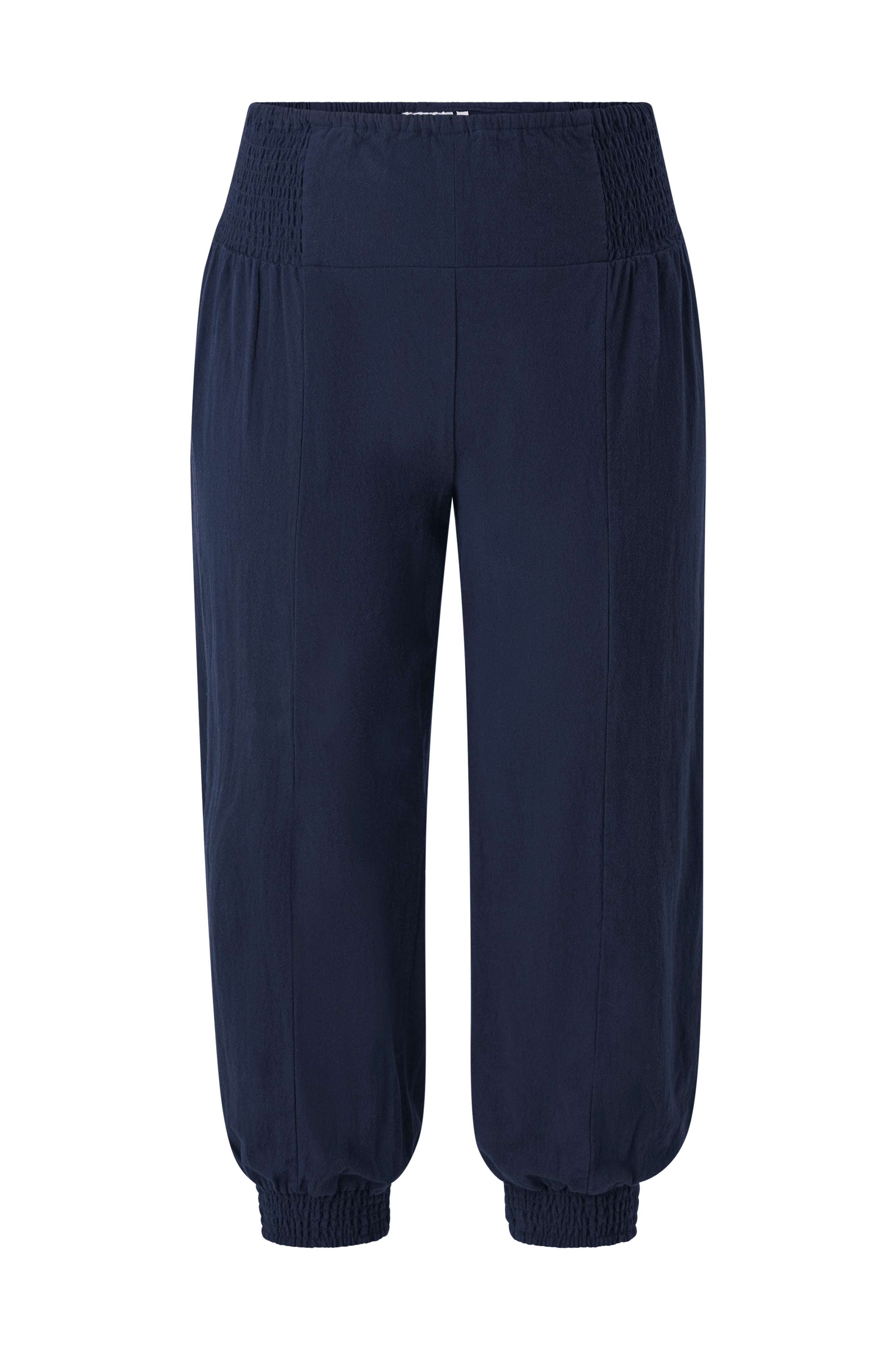• 3/4 lange bukser med smock ved enden af benene• Bred smock ved taljen• Løs pasform• Store størrelser• Indre benlængde: 61 cm i størrelse S