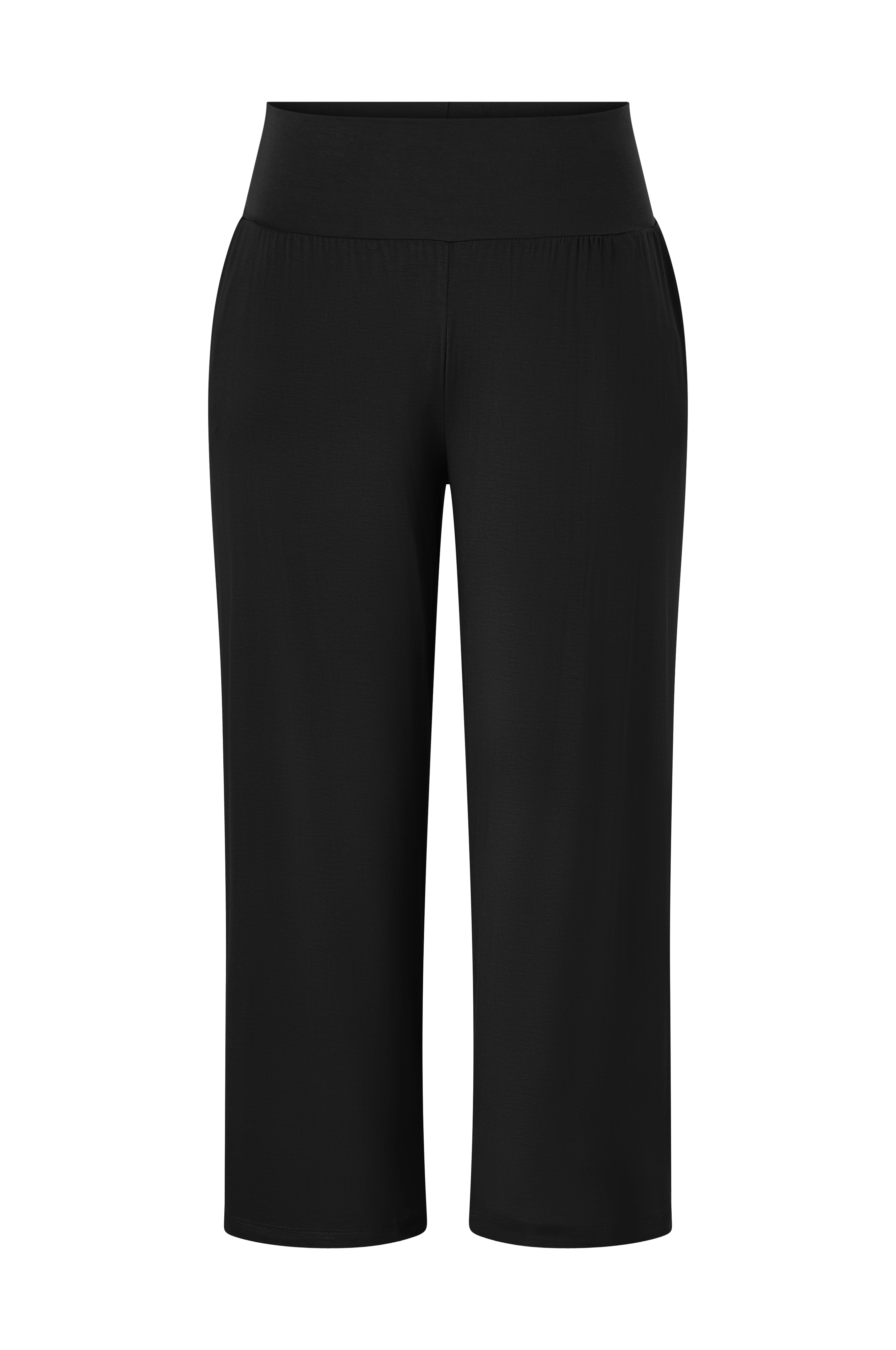• Bløde, croppede bukser• Elastisk Linning• Lige, brede bukseben• Sidelommer• Store størrelser• Indre benlængde: 69 cm i størrelse S