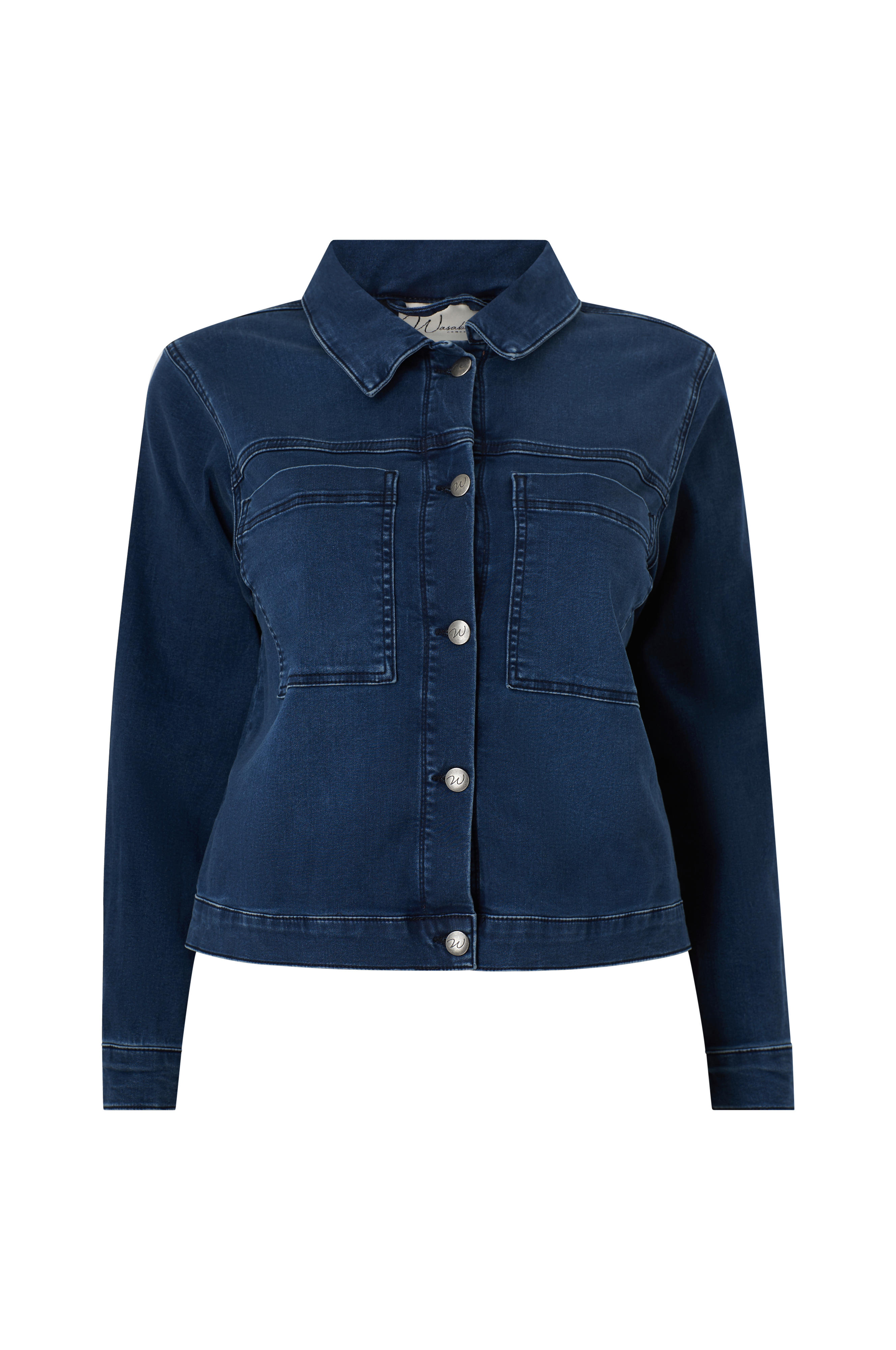 • Fremstillet af blød strækdenim• Metalknapper• To brystlommer• Metalknapper• Store størrelser• Længde: 60 cm i størrelse S
