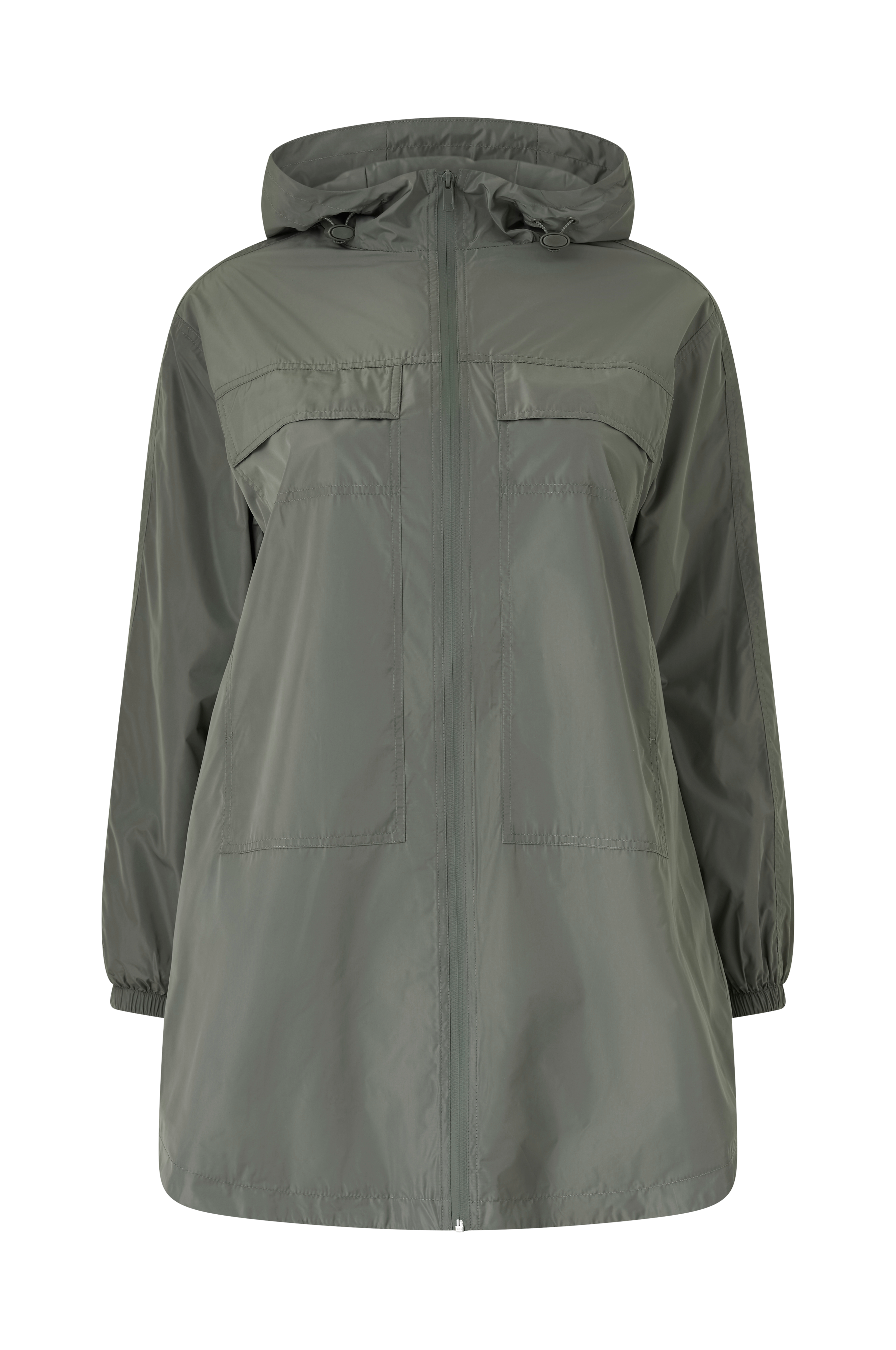 • Funktionel jakke med fast, justérbar hætte• Lynlås• To brystlommer med lommelåg• Elastik ved manchetterne• Træksnørre bagpå ved taljen• Løstsiddende linning bagpå• Store størrelser• Længde: 95 cm i størrelse S