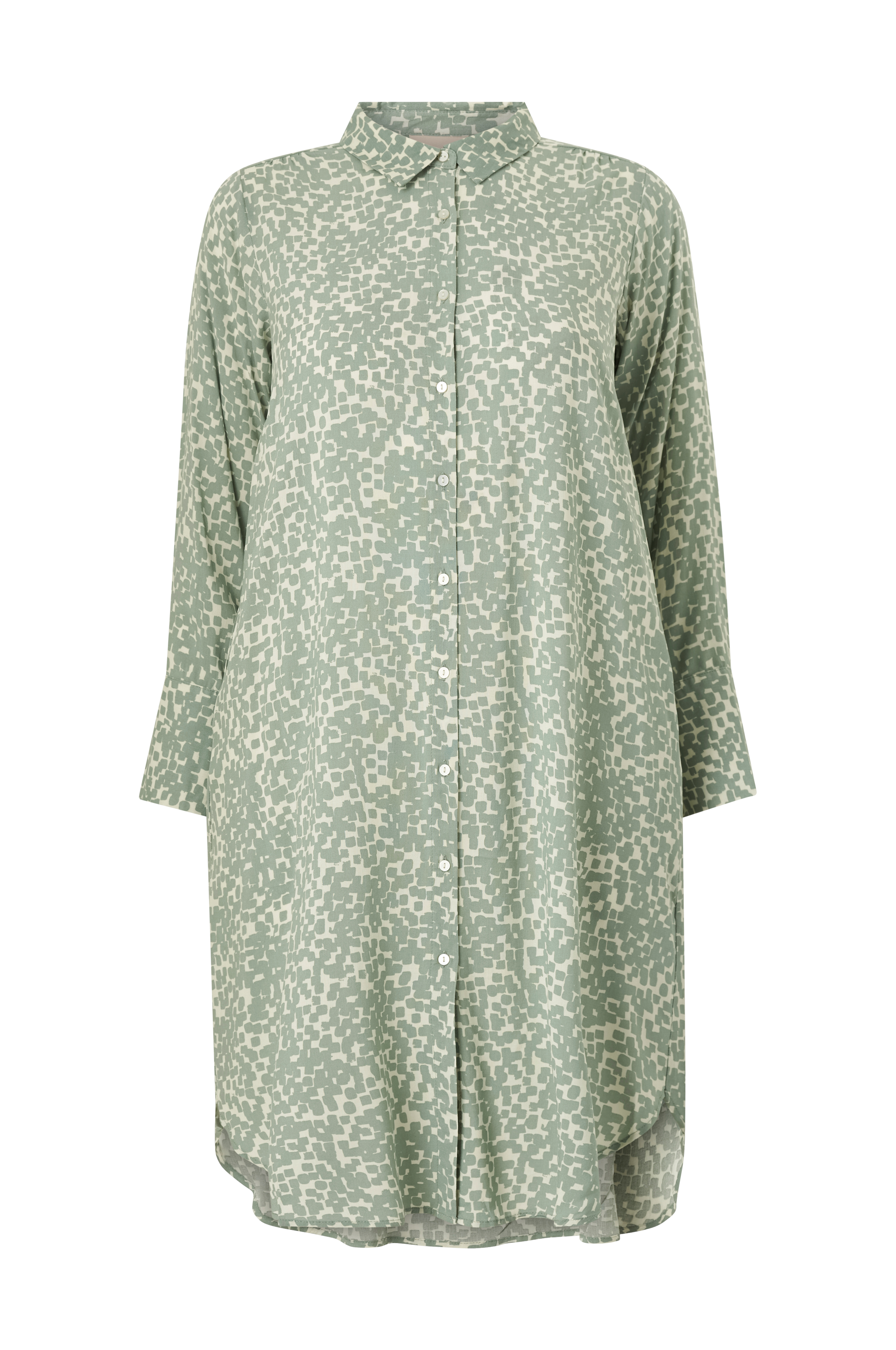 • Kjole i viskose• Gennemknappet model• Lange ærmer• Brede manchetter med en knap• Store størrelser• Længde: 111 cm i størrelse S