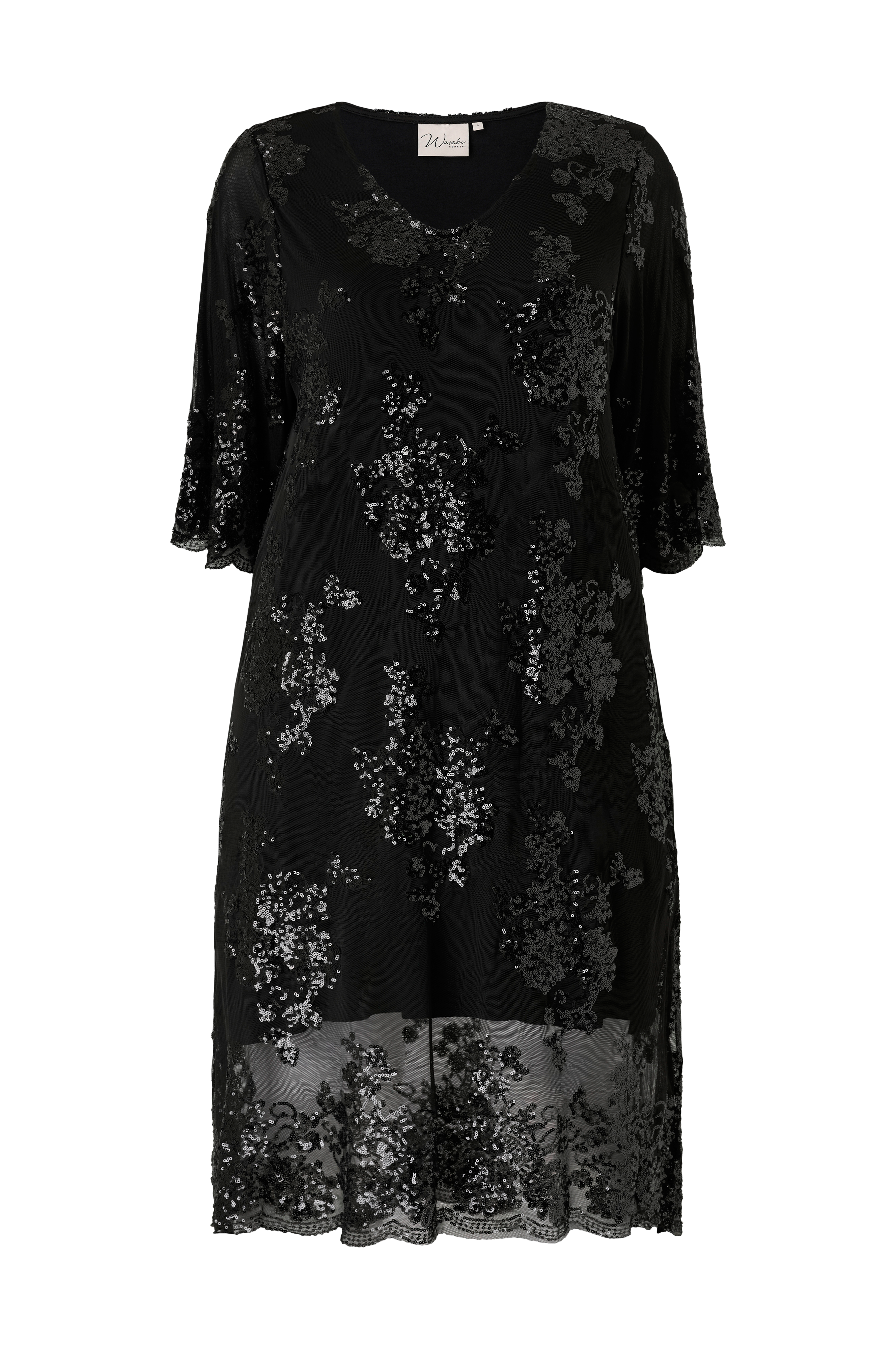 • Kjole i mesh med pailleter• Blødt for i jersey• V-formet halsudskæring• Halvlange ærmer• Lige, afslappet pasform• Plusstørrelser• Længde: 120 cm i størrelse S