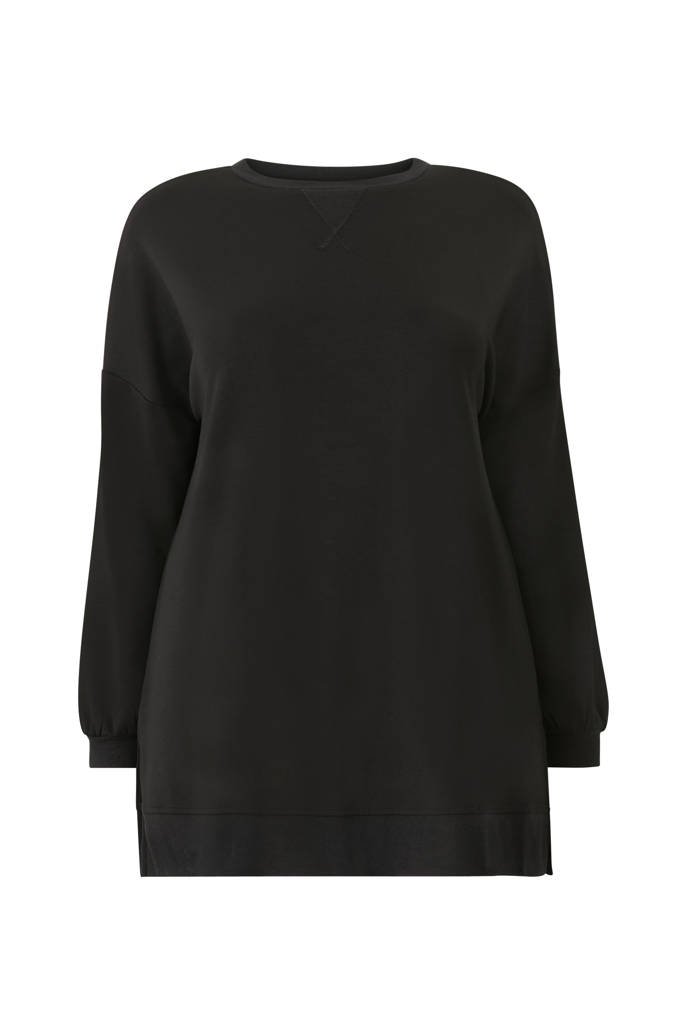 • Blød, elastisk kvalitet• Rund halsudskæring• Nedsænkede skuldre• Manchetter ved manchetterne• Slids nede i siderne• Store størrelser