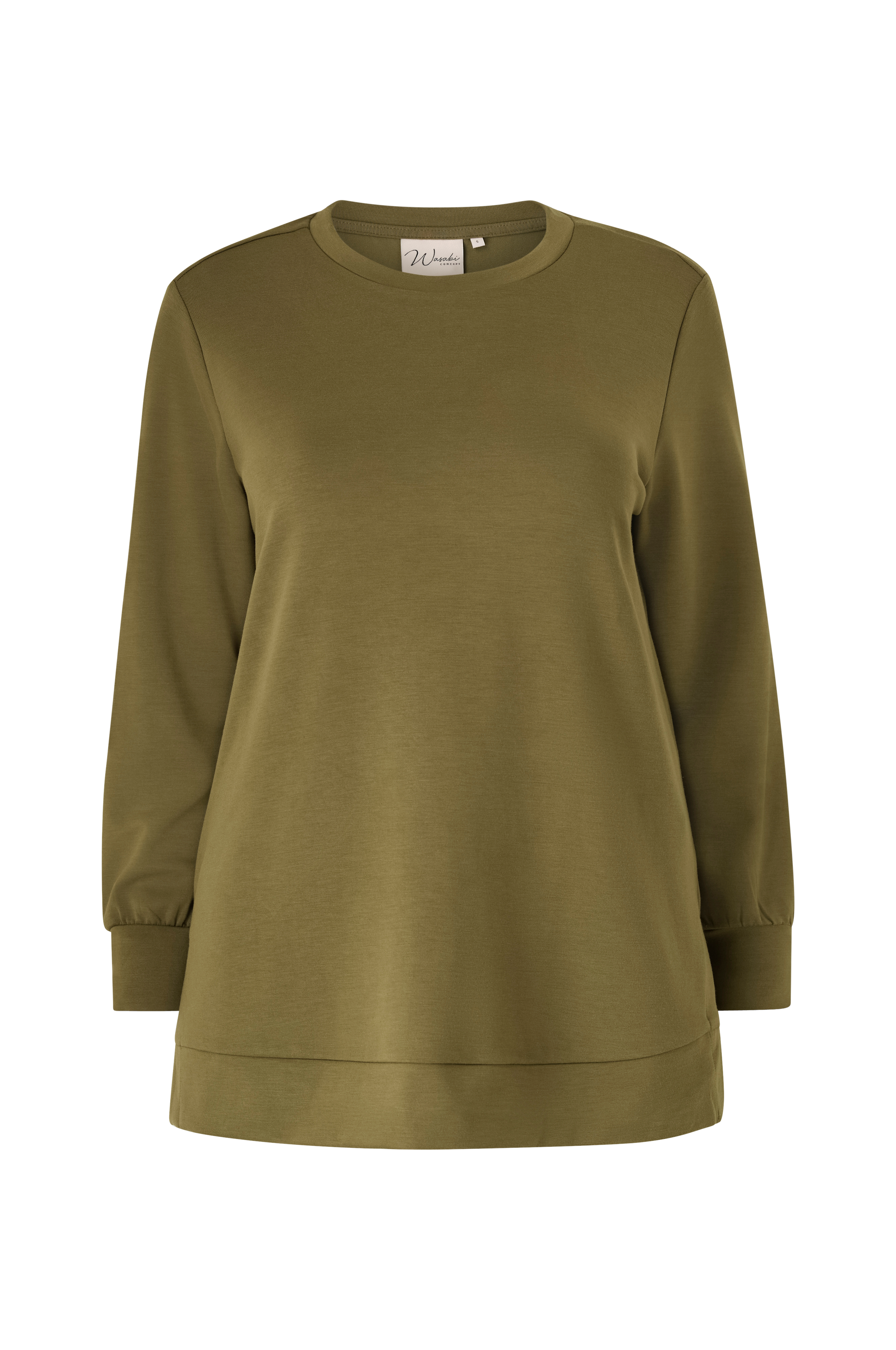 • Blød, elastisk sweatshirt i lidt tyndere materiale• Rund halsudskæring• Lange ærmer med manchetter ved manchetterne• Slids nede i siderne• Plusstørrelser