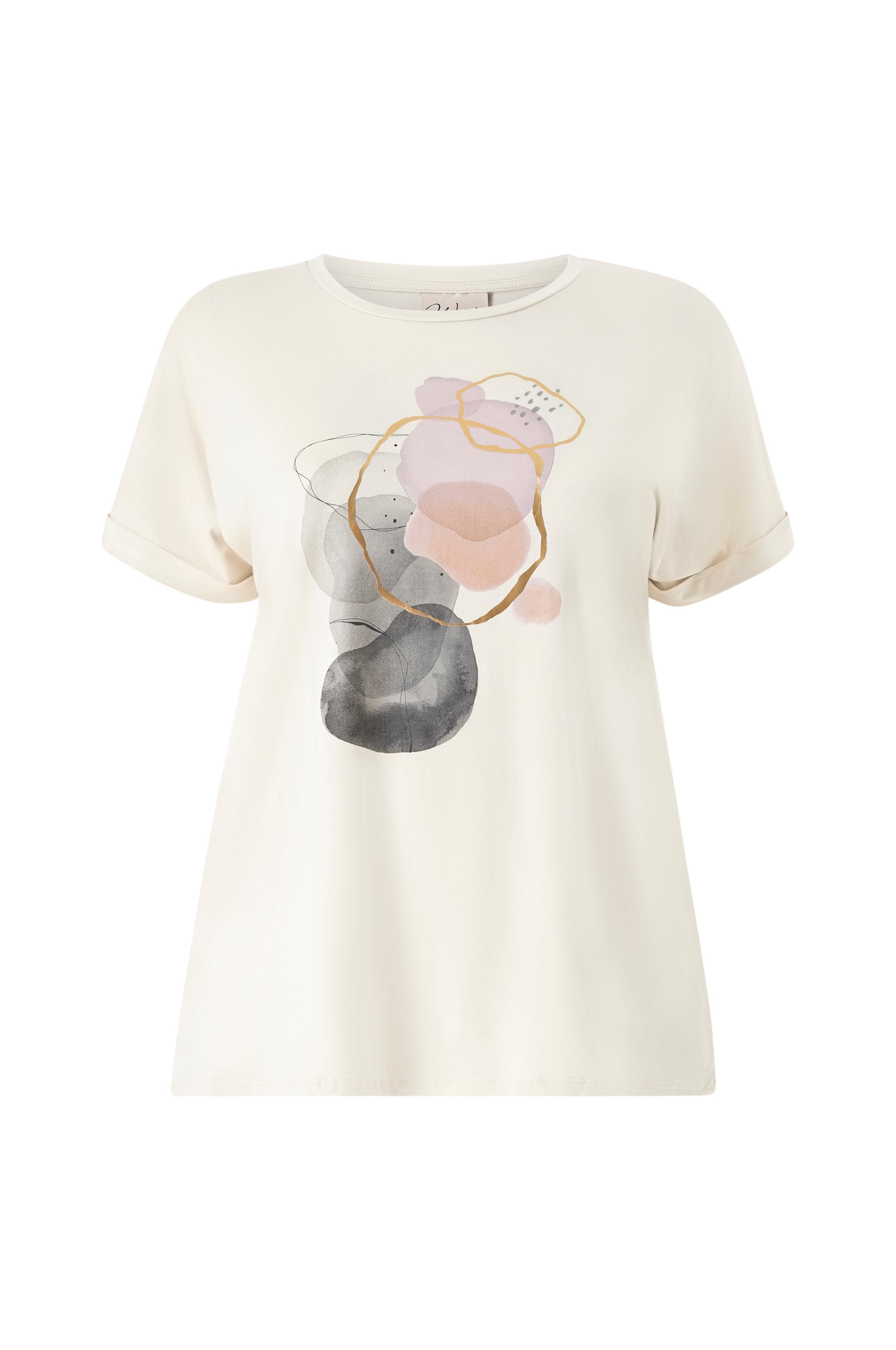 • T-shirt i blød, elastisk lyocell• Rund halsudskæring• Skinnende tryk foran• Korte ærmer med syede ærmeafslutninger• Store størrelser