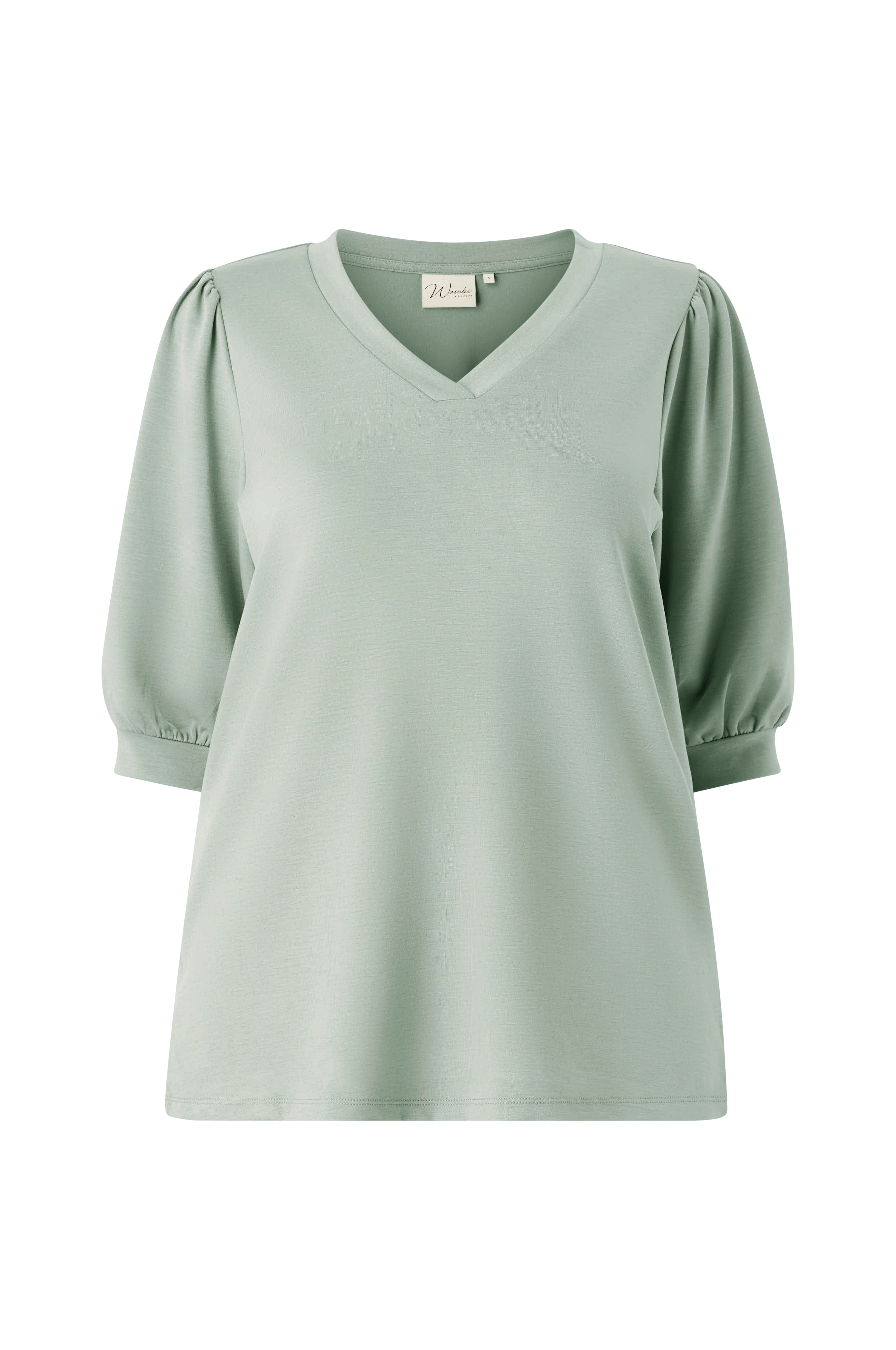 • Top i blød, elastisk jersey• V-formet halsudskæring• 3/4 lange ballonærmer med manchet ved manchetterne• Store størrelser