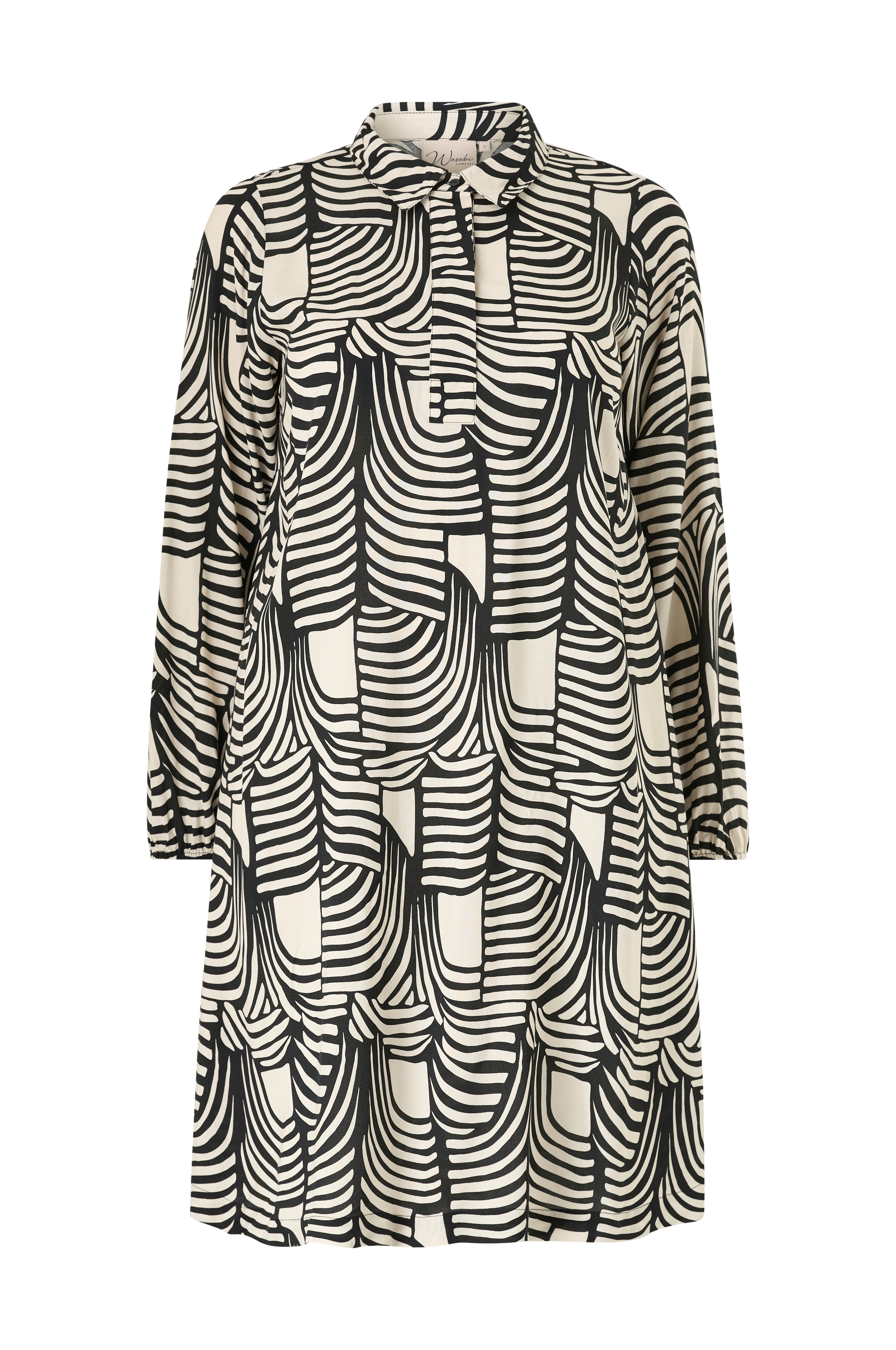 • Luftig, mønstret tunika i viskose• Skjortekrave• Kort knaplukning foran• Lange ærmer• Elastik ved manchetterne• Plusstørrelser• Længde: 109 cm i størrelse S