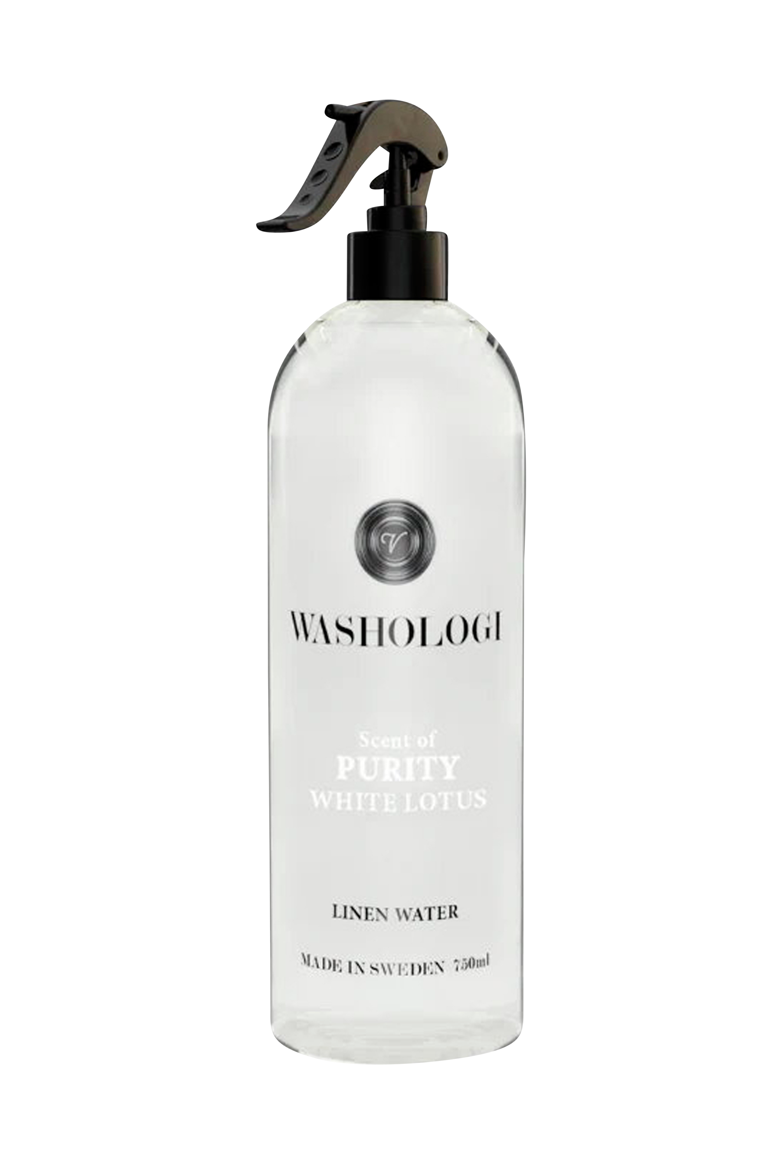 WASHOLOGI's Linen Water Purity har en blomsterduft af hvid lotus, der giver dit tøj en friskvasket fornemmelse. Brug det på dit tøj som en opfrisker eller til alt, hvad du vil have til at dufte behageligt, og det reducerer også statisk elektricitet. Vores linnedvand er produceret på den smukke svenske vestkyst, er biologisk nedbrydeligt og fri for farvestoffer!