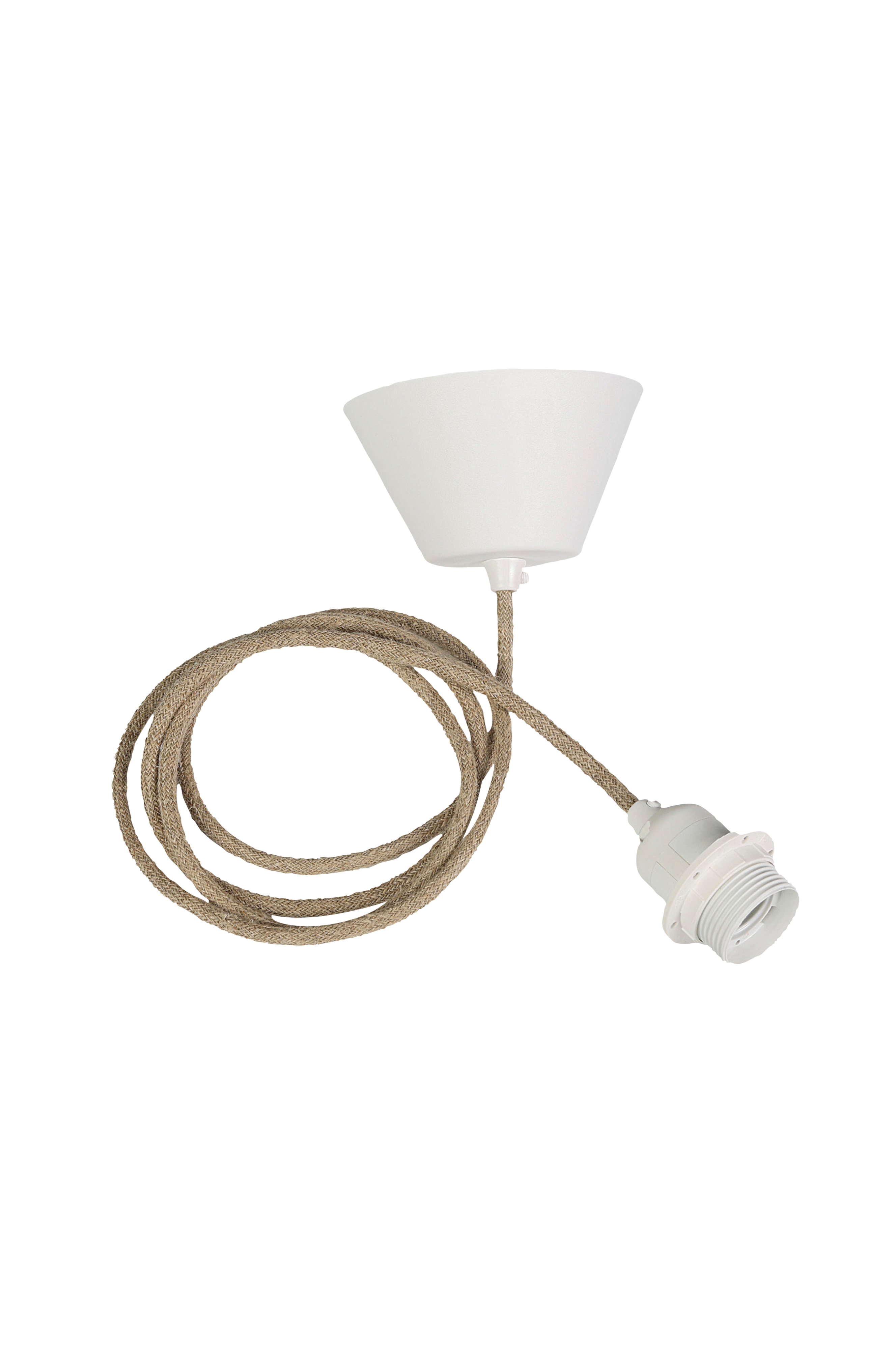 Loftophæng med E27 sokkel fra Watt & Veke til din loftlampe eller lampeskærm. Komplet med hvid baldakin og stofledning. En detalje som tilfører lampen et blødt og hyggeligt udtryk.