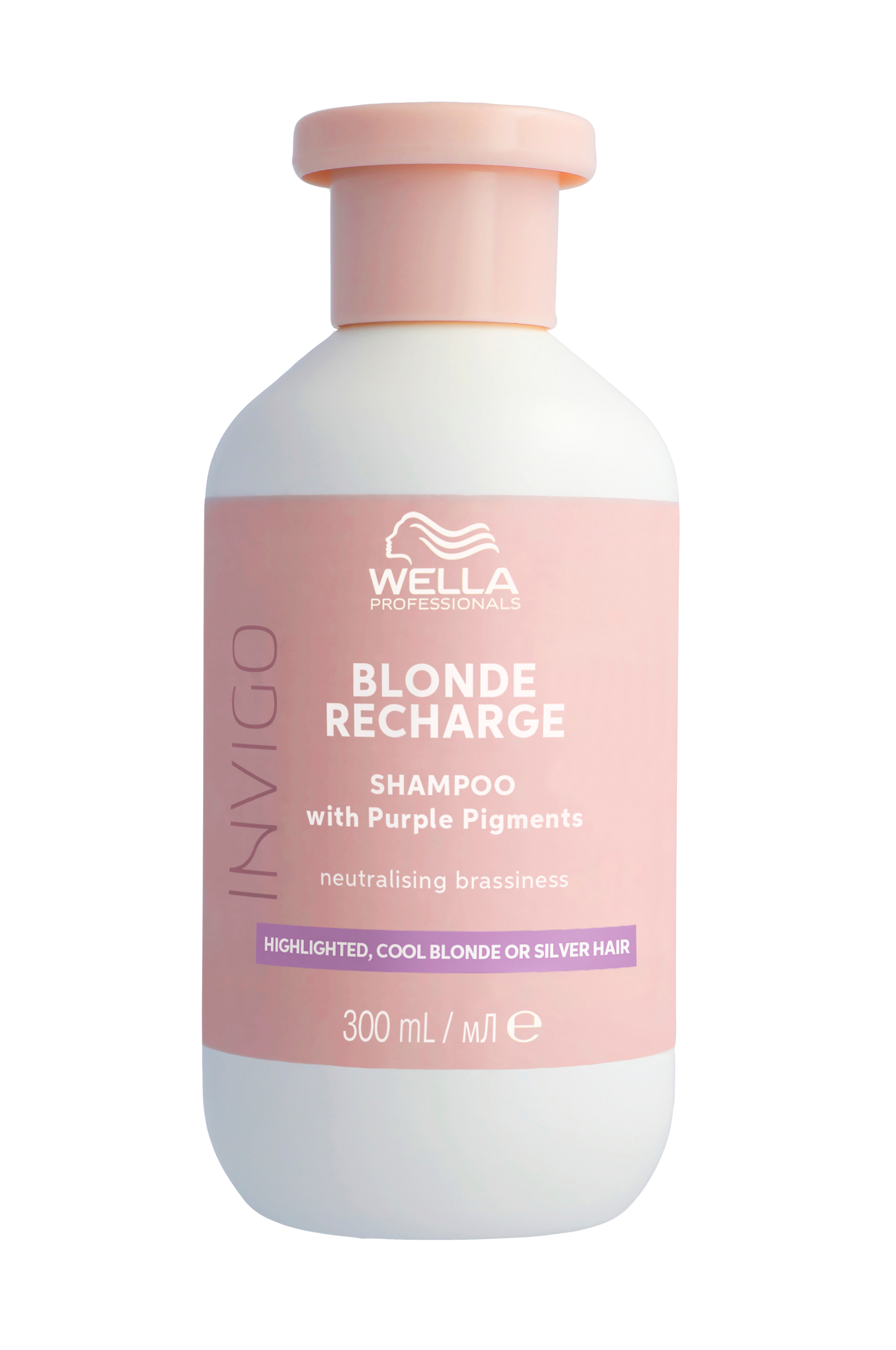 Wella Professionals Invigo Blonde Recharge Cool Blonde Shampoo er en lilla shampoo til hår med blonde toner. Denne shampoo er det perfekte valg til at forhindre gule toner og eliminere enhver gulhed i naturligt eller farvet blond hår. De nærende ingredienser i denne shampoo fugter håret og gør det blødt og glat. Cool Blonde Color Refreshing Shampoo fornyer og bevarer farven og livligheden af naturlige eller krøllede blonde nuancer.