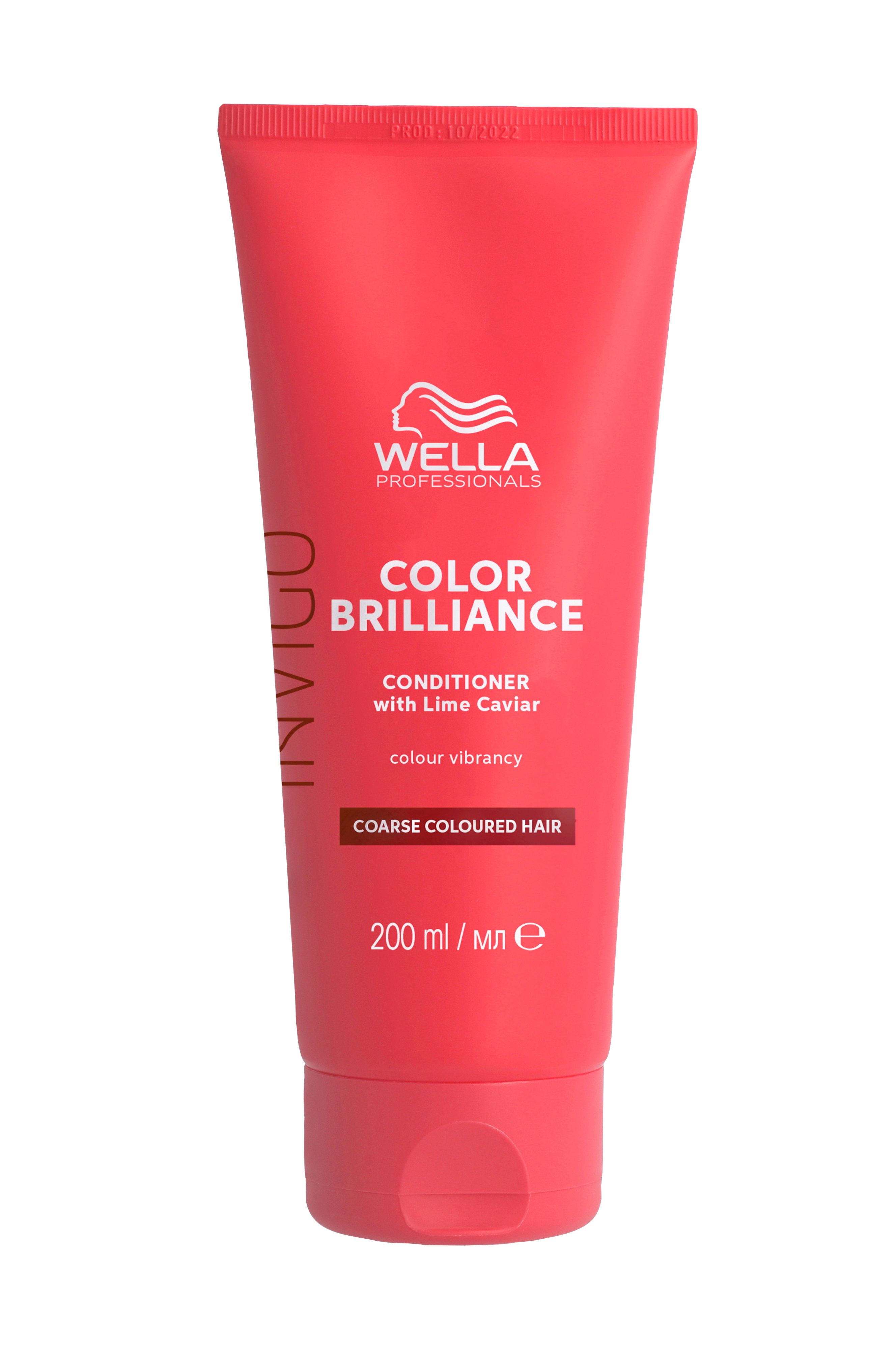 Wella Professionals Invigo Color Brilliance Conditioner til groft hår er en professionel farvebevarende balsam til farvet hår. Denne professionelle balsam er designet til at bevare farvens vitalitet og forbedre håroverfladen, mens den efterlader dit hår smidigt, skinnende og uimodståeligt blødt at røre ved. Denne farvebevarende balsam indeholder Color Brilliance-Blend™ og limekaviar, en ingrediens, der er kendt for at være rig på forskellige antioxidanter og vitaminer, og hjælper aktivt med at kontrollere oxidationsprocessen, der opstår efter farvning.