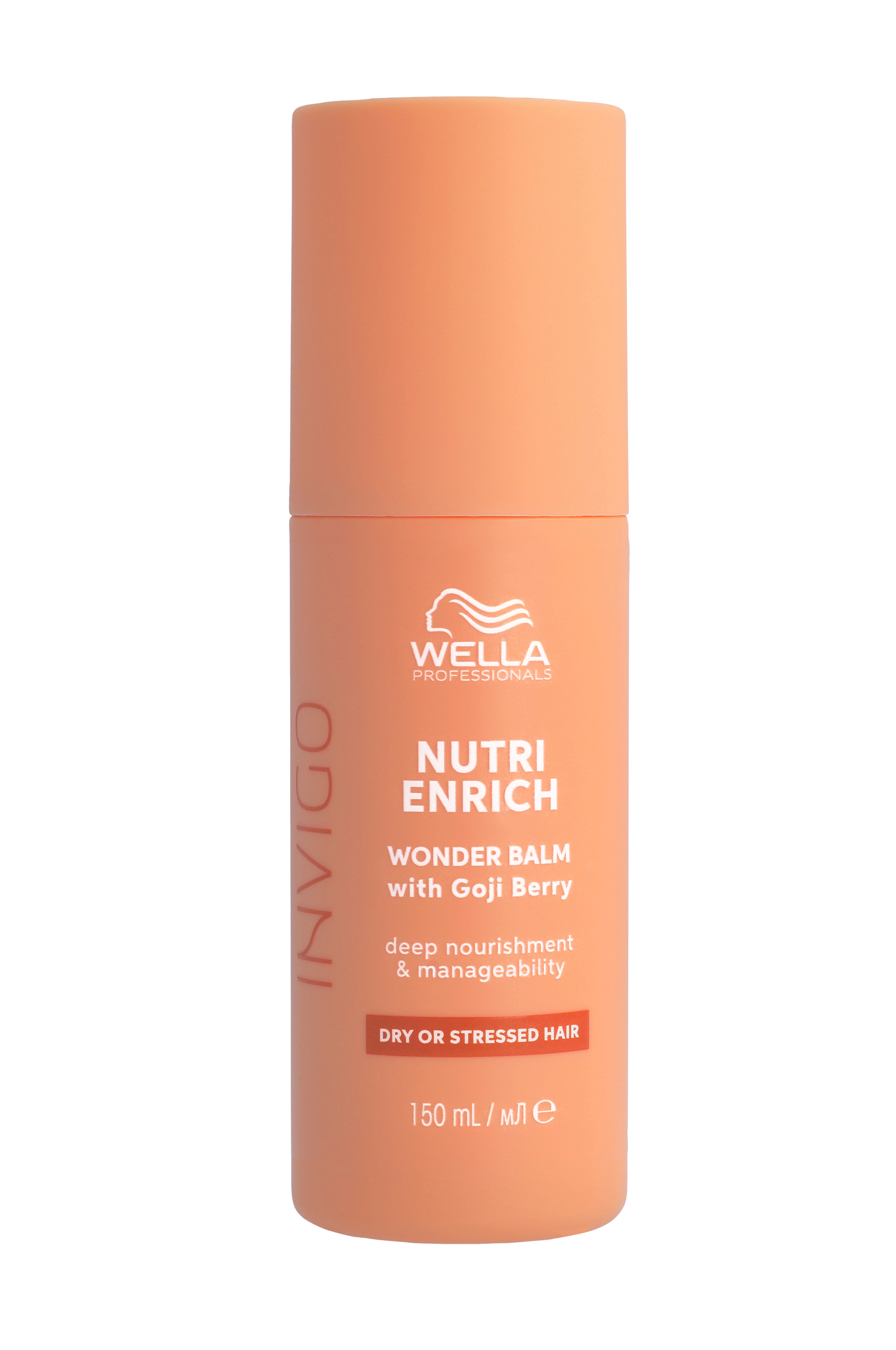 Wella Professionals Invigo Nutri Enrich Wonder Balm er en professionel dybdeplejende hårbalsam til tørt og beskadiget hår. Den ekstra rige leave-in-formel smelter ind i håret og trænger ind i fibrene for en dyb glathed. Denne dybt nærende hårbalsam indeholder Nutri-Enrich-Blend™, oliesyre og panthenol til at fugte og nære håret. Nutri Enrich Wonder Balm er også infunderet med gojibær, en ingrediens kendt for at være ekstremt rig på vitaminer, mineraler og peptider.