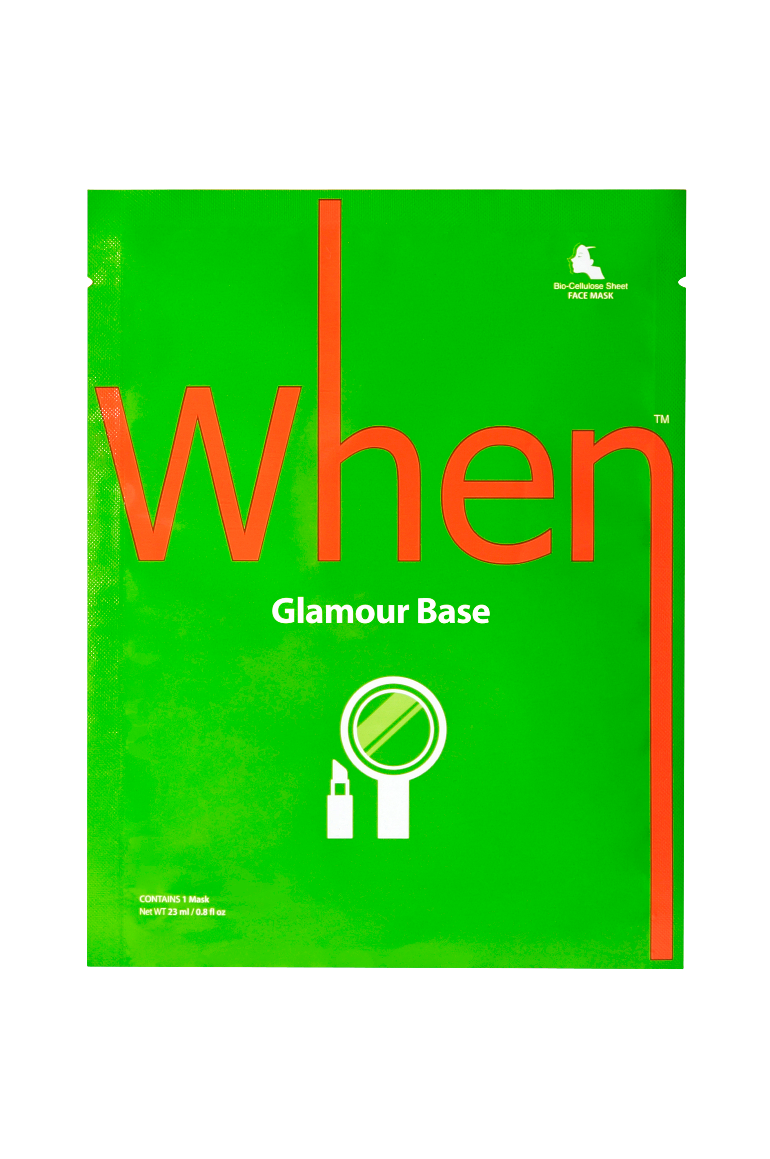 When Glamour Base er en ansigtsmaske som anvendes før påføring af make-up for at gøre den mere holdbar. Indeholder kokossaft med adenosin og peptider som giver en blød jelly-konsistens, der hjælper til at forbedre hudens elasticitet. Som alle andre When-produkter indeholder den også hyaluronsyre samt ginsengekstrakt. Brug før du påfører make-up.