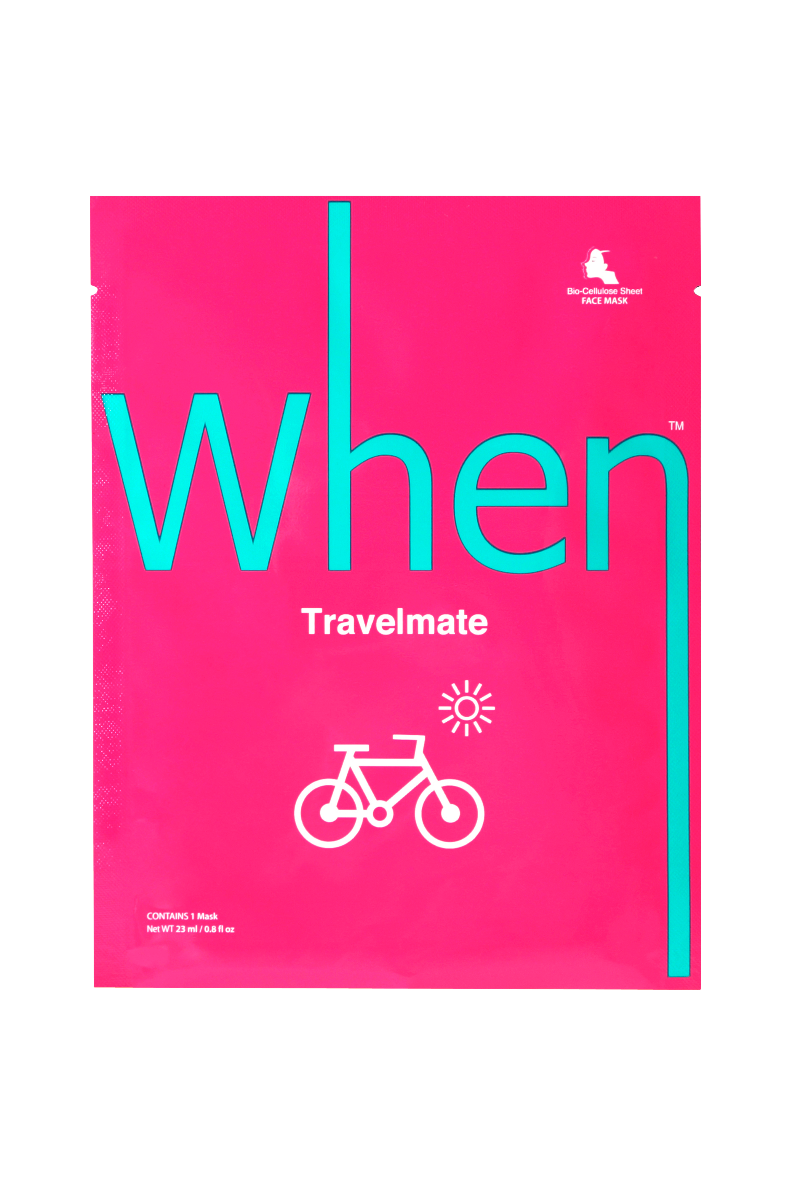 When Travelmate - din rejseledsager, der beskytter huden mod sol, vind og tør luft. Denne bløde, geléagtige maske med kokossaft og serum giver en behagelig fornemmelse. Indeholder kamille og schweiziske urteekstrakter. Som alle andre When-produkter indeholder den også hyaluronsyre samt ginsengekstrakt.