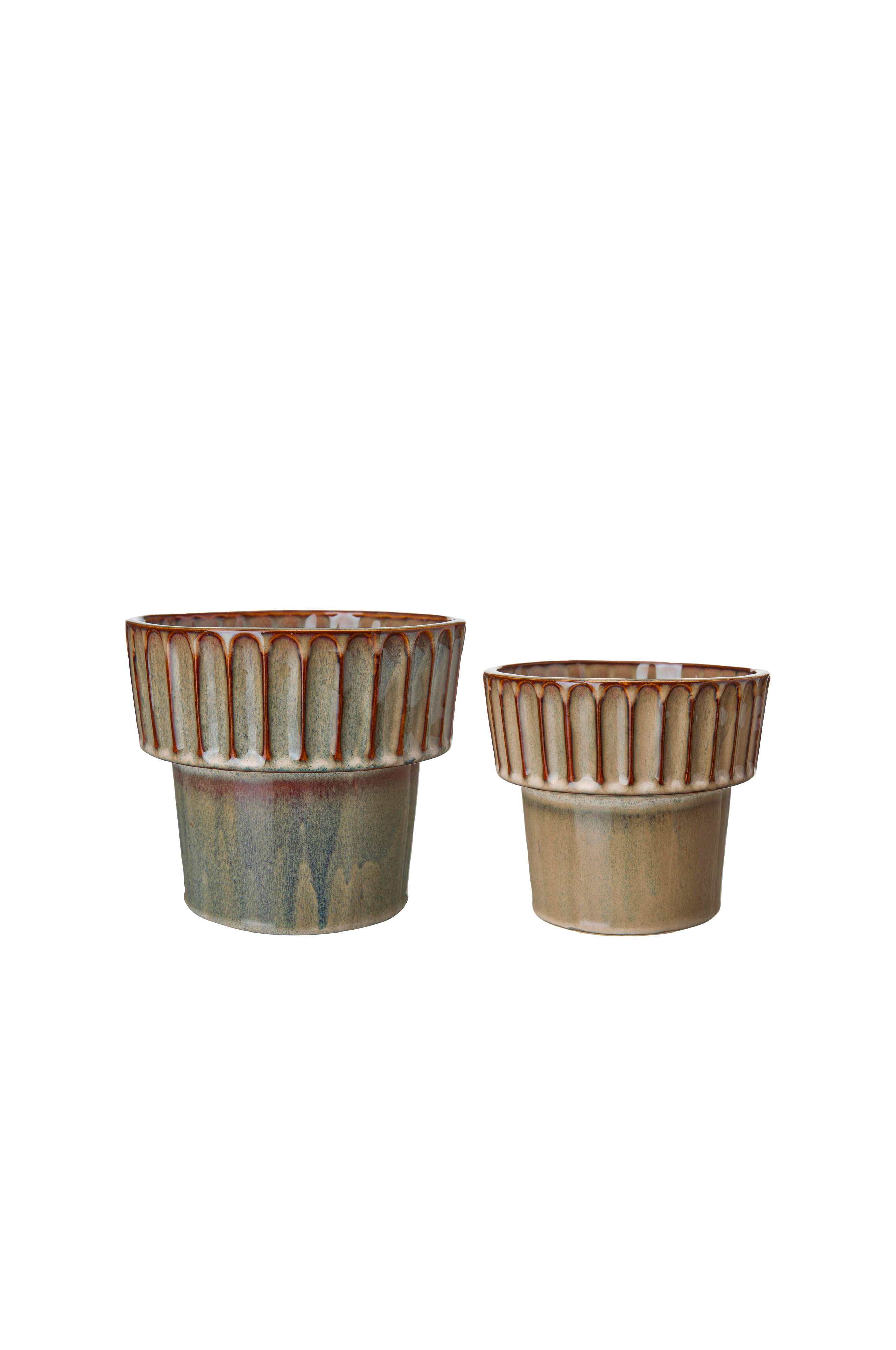 Gryde tove brun melange sæt med 2 stk, 18x16 15x13cm ø16,5 cm, ø13,5 cm