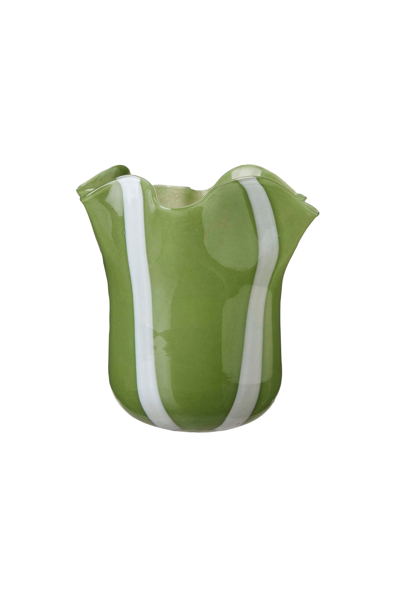 Nilea vase stribe, 23x18cm, ø21 hvid/grøn