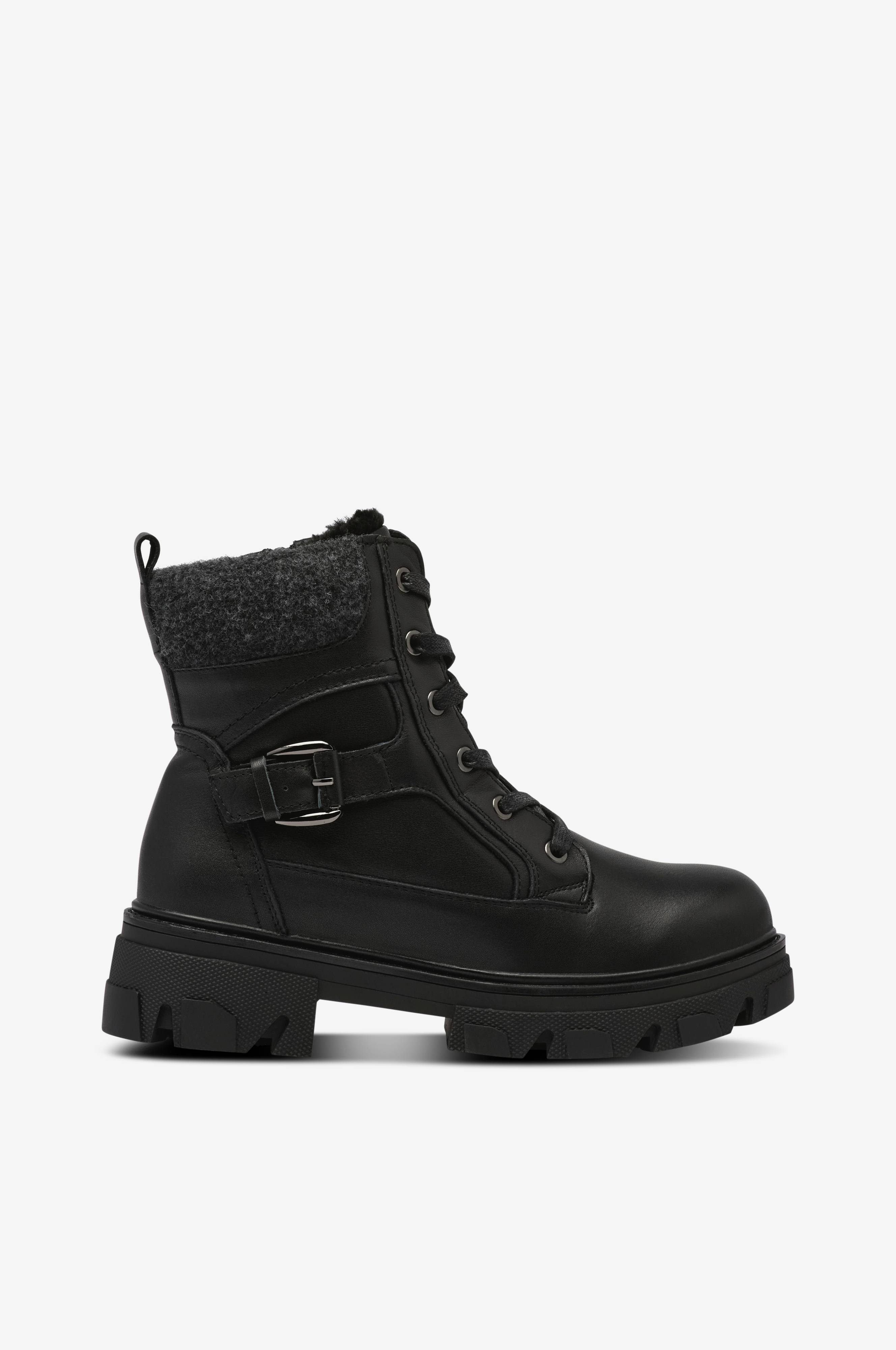 • Varmt forede ankelstøvler i læder• For i kunstskind• Snøring• Lynlås på indersiden af skaftet• Trækstrop bag på skaftet• Kant i filtet tekstil på skaftet• Udtagelig, filtet indersål• Ydersål i gummi• Skafthøjde: 12 cm i str. 37