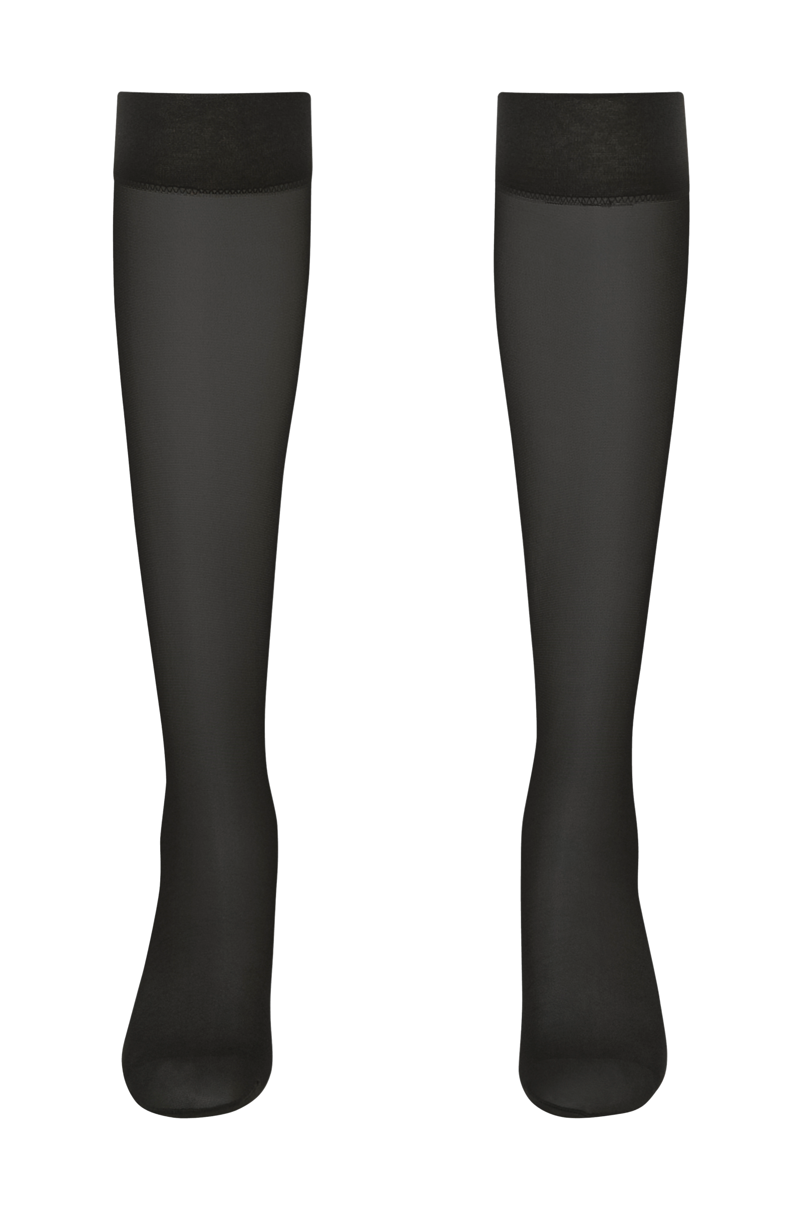 Tynde knæstrømper med en let blank overflade. Blød, behagelig ribkant foroven. 20 denier.