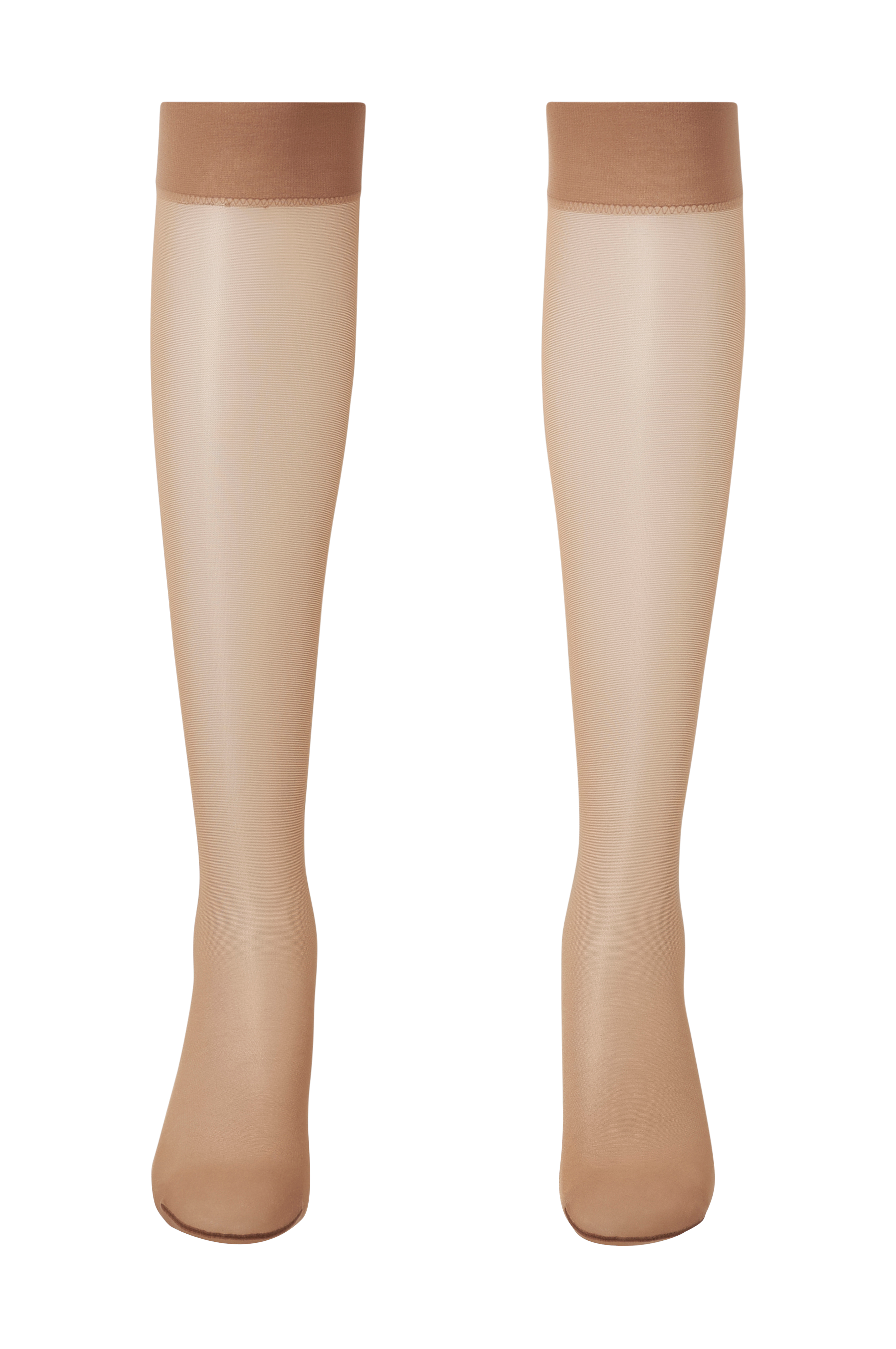 Tynde knæstrømper med en let blank overflade. Blød, behagelig ribkant foroven. 20 denier.