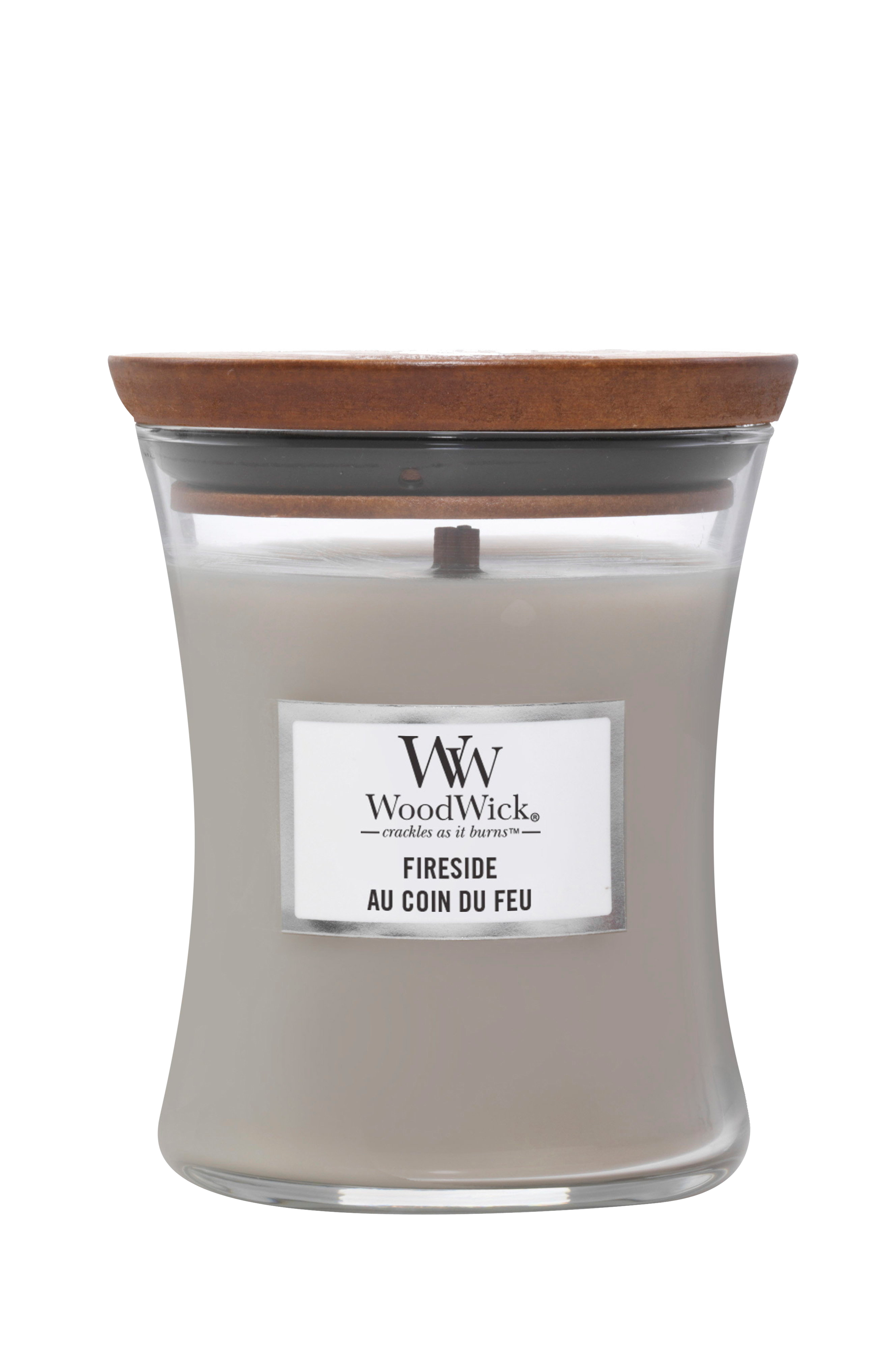 Medium timeglasduftlys fra WoodWick®, der fylder dit hjem med sofistikerede dufte og en hyggelig knitren fra den patenterede trævæge, der er unik for WoodWick®. Den karakteristiske knitren skabes af PLUSWICK®, en innovativ trævæge, der ud over at give en stemningsfuld lyd optimerer både spredningen af duft i rummet og brændetiden for dit duftlys.