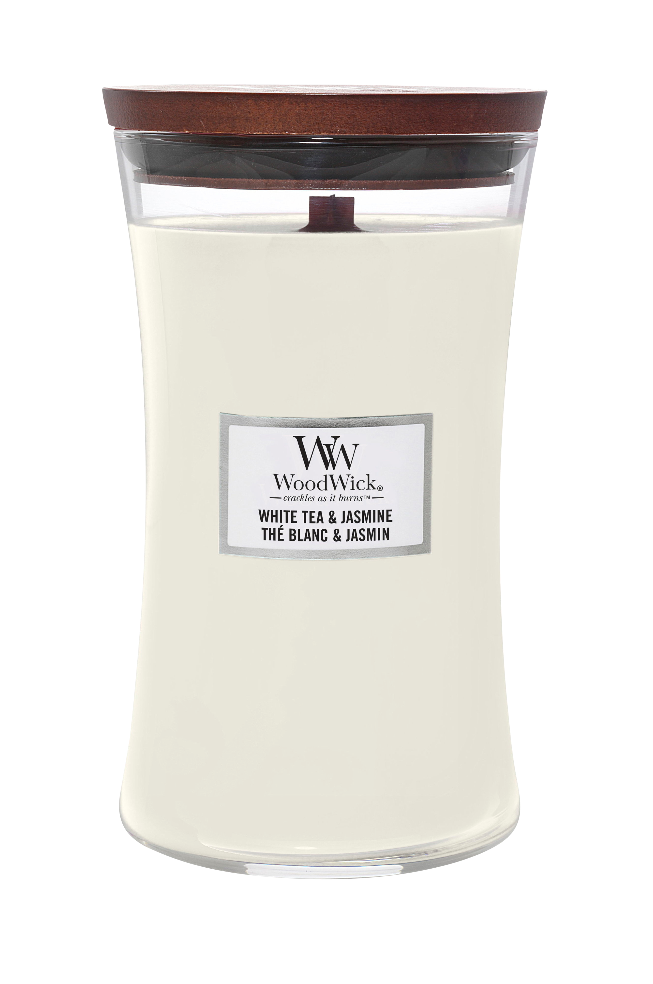 Stort timeglasduftlys fra WoodWick®, der fylder dit hjem med sofistikerede dufte og en hyggelig knitren fra den patenterede trævæge, der er unik for WoodWick®. Den karakteristiske knitren skabes af PLUSWICK®, en innovativ trævæge, der ud over at give en stemningsfuld lyd optimerer både spredningen af duft i rummet og brændetiden for dit duftlys.