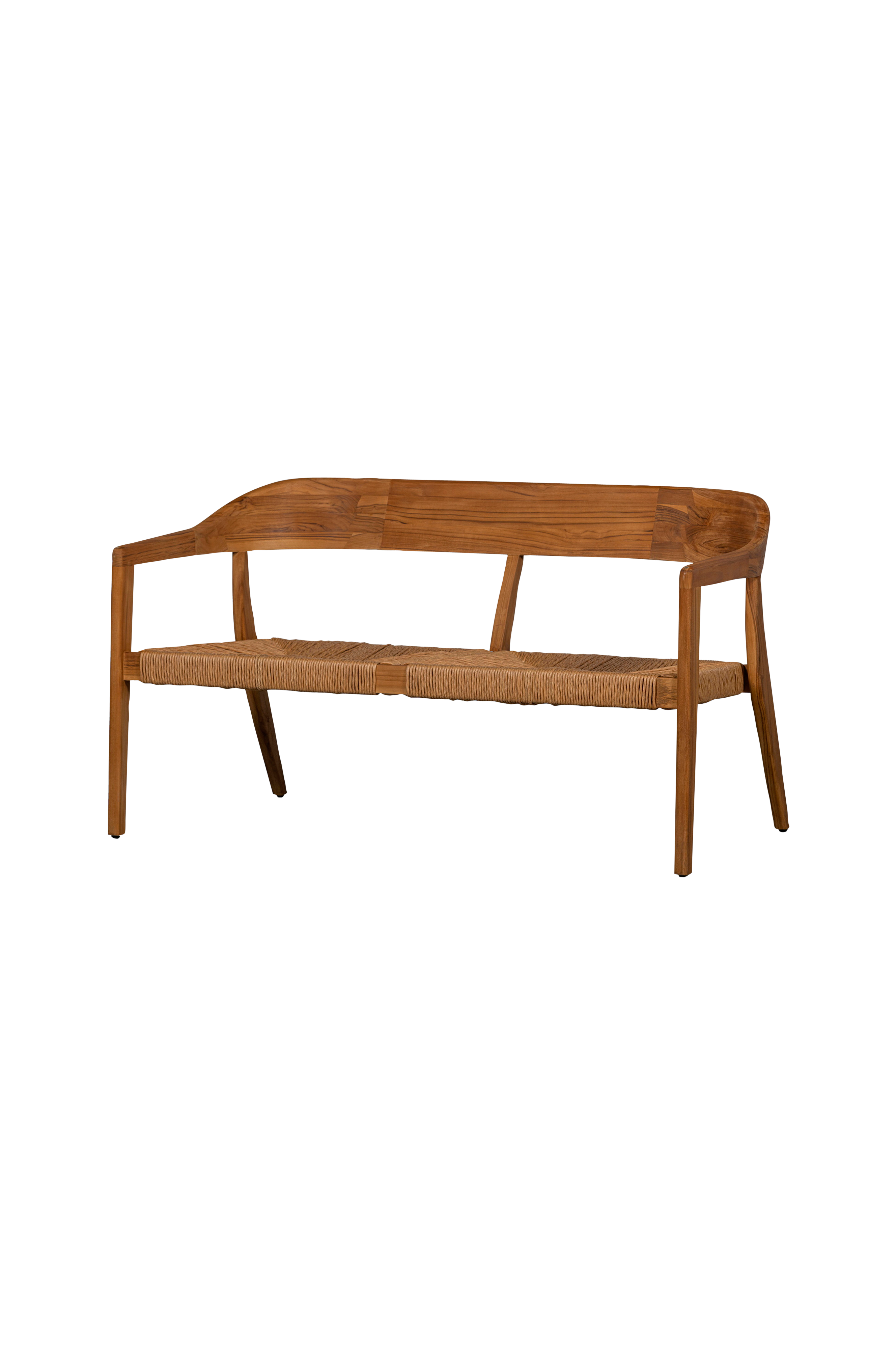 Denne karakteristiske udendørs bænk kommer fra kollektionen af det hollandske mærke woood. Teaktræets naturlige finish giver bænken et tropisk, men også luksuriøst look. Det brede benstel og den rummelige flettede siddeflade sikrer, at designet giver en afslappet siddeflade.