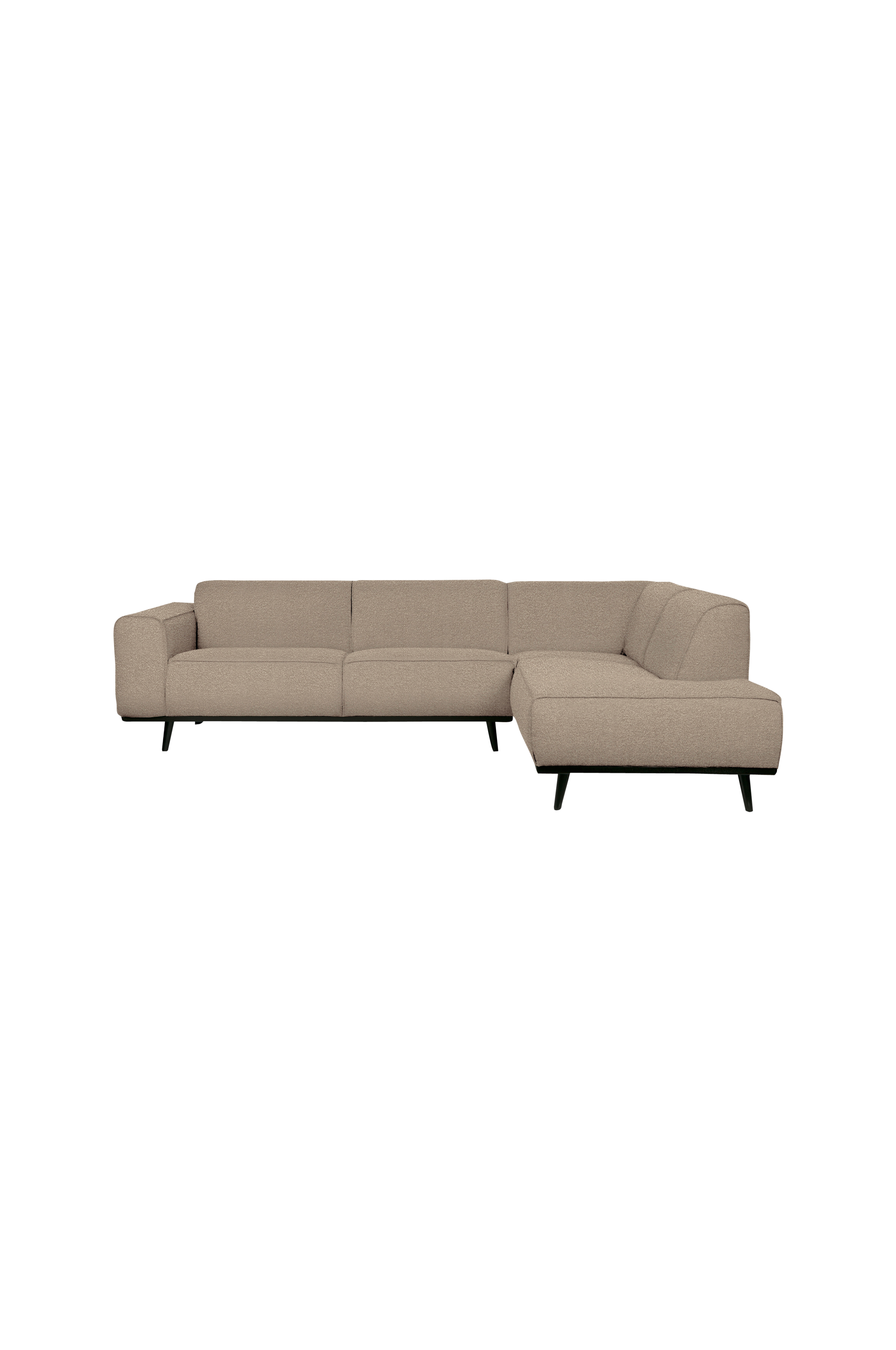 Denne sofa er et iøjnefaldende indslag i hjemmet. En sofa definerer stemningen i rummet og denne sofa er et godt grundlag for flere forskellige indretningsstile. Statement hjørnesofa i kollektionen fra BePureHome har et enkelt design, men skiller sig ud på grund af sin størrelse. Statement er betrukket med et boucléstof (100% polyester), som giver sofaen en elegant stil og en blød følelse. Statement hjørnesofa har masser af siddeplads, er behagelig at sidde i og fås i højre og venstre version. Står du foran sofaen og hjørnet er til højre, er det højreversionen. Statement sofaen fås i flere forskellige varianter, stoffer og farver.