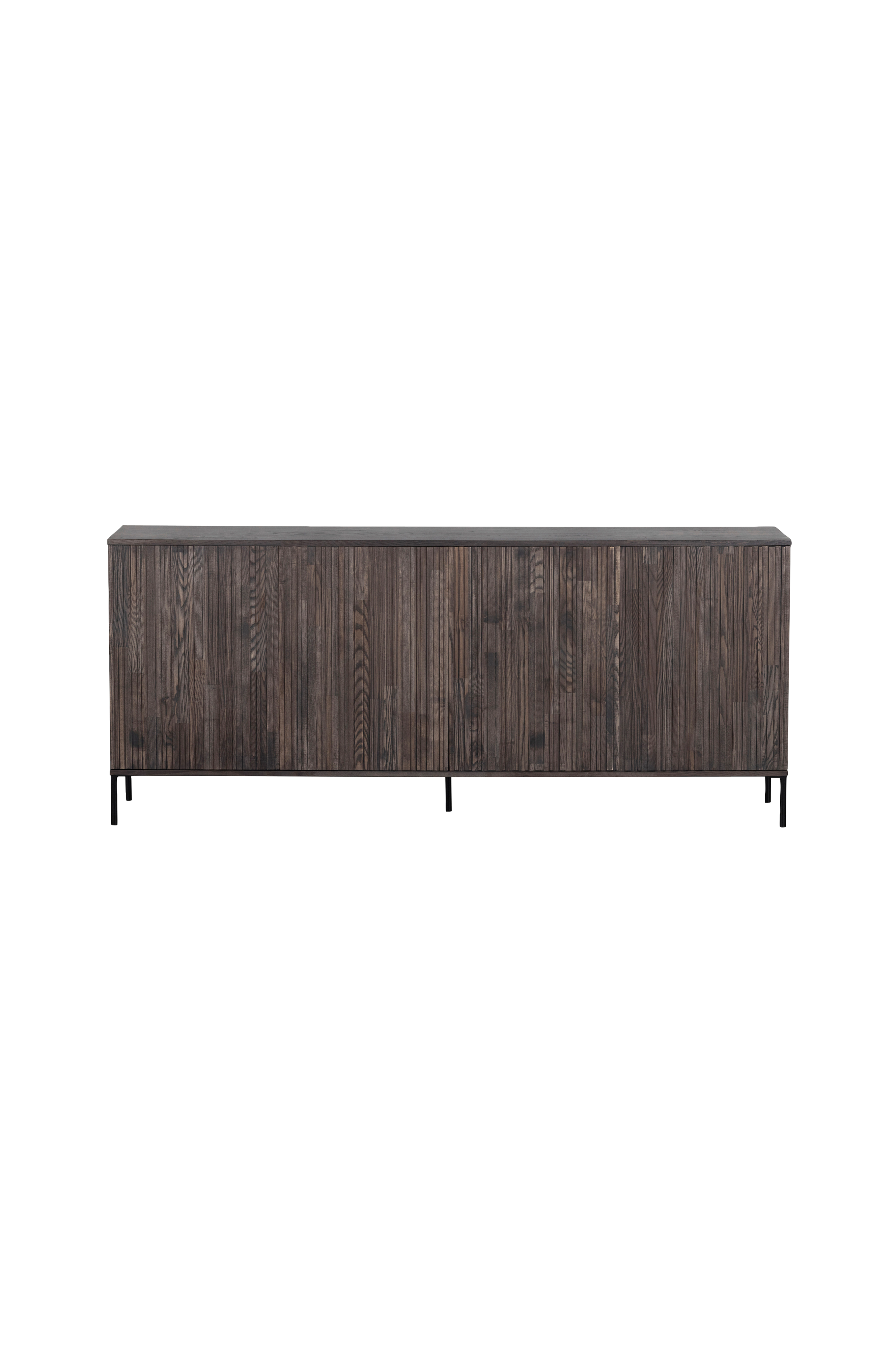 Vores populære kollektion Gravure i ny udgave! Denne Gravure New skænk, fra det hollandske indretningsmærke WOOOD, er endnu større end sin flotte forgænger. Gravure New skænk er lavet af fingersamlet ask med finish i den brune farve espresso. Indersiden er lavet i sort spånplade. Benene er lavet i sortmalet metal. Gravure New skænk har fire låger med støjsvagt push-to-open-system.