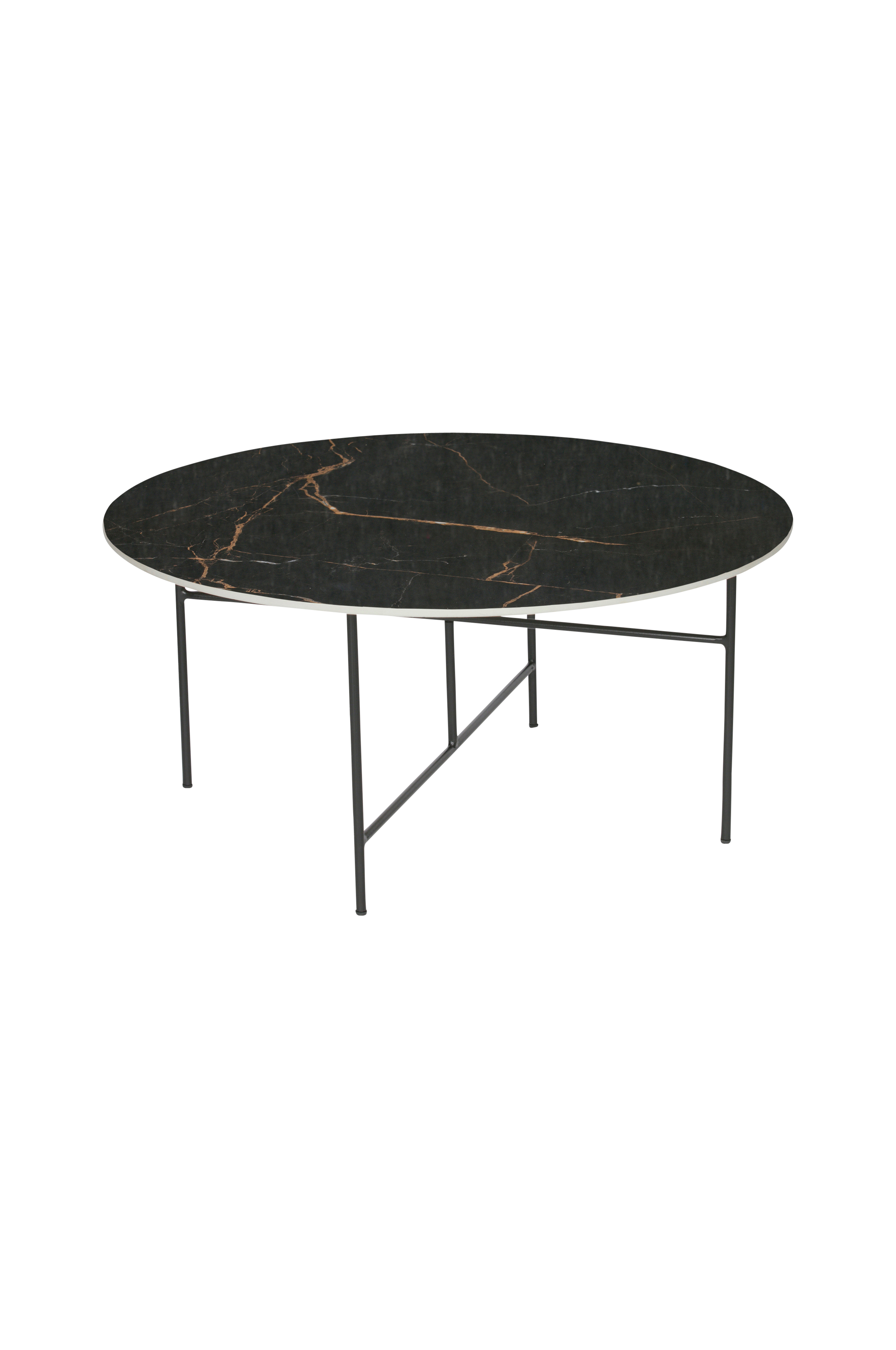 Et rigtigt blikfang i alle indretninger! Dette Vida-sidebord fra WOOOD har et trendy og luksuriøst udseende. Dette skyldes kombinationen af porcelænspladen med marmorlook og det smalle metalstel. Metalstellet er sammenklappeligt. Det gør det lettere at flytte bordet. Sofabordets plade med marmorlook gør hvert bord unikt.