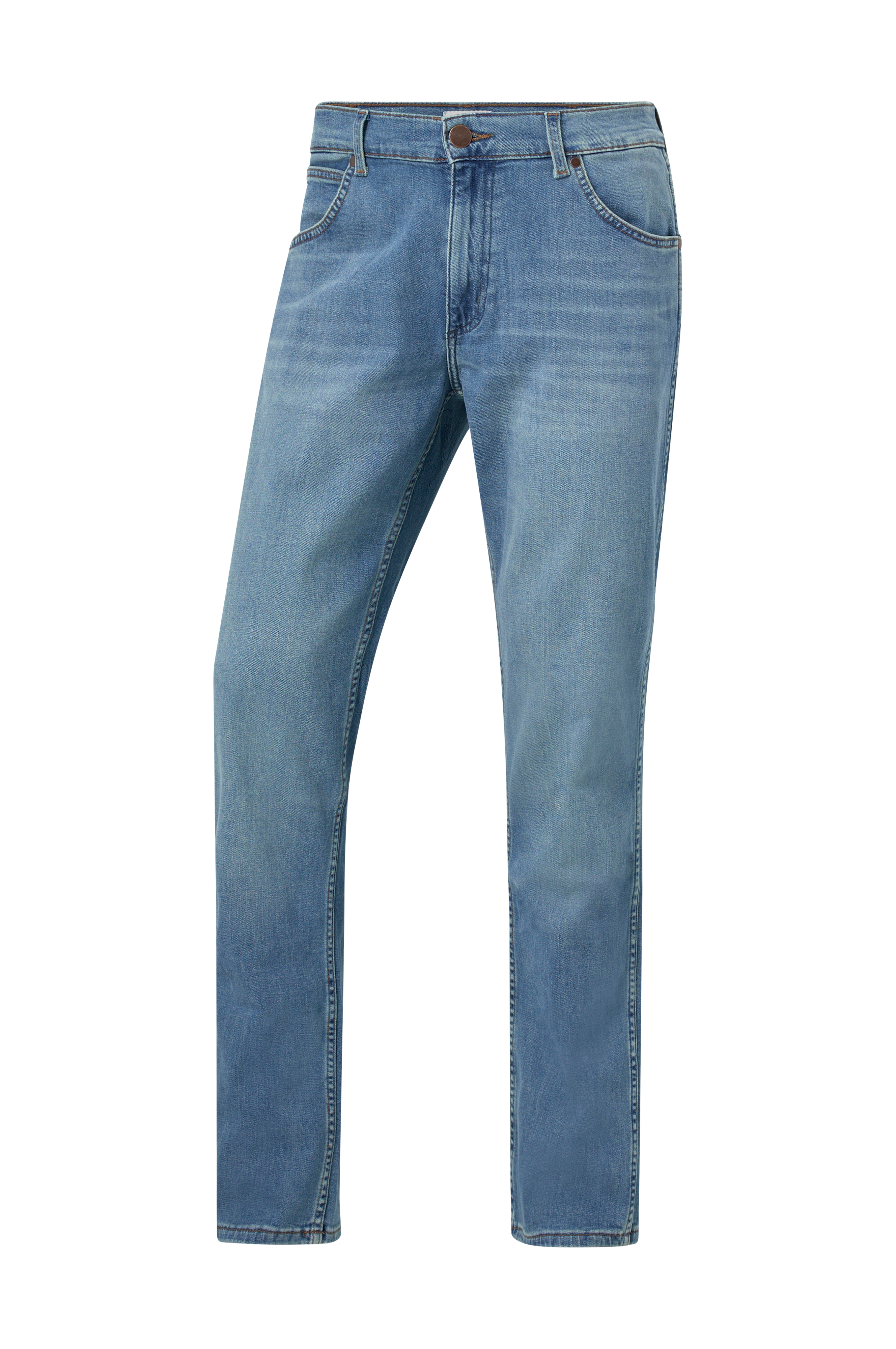 Jeans af stretchdenim med normalhøj talje og lige ben. 5-lommemodel med lynlås i gylpen.