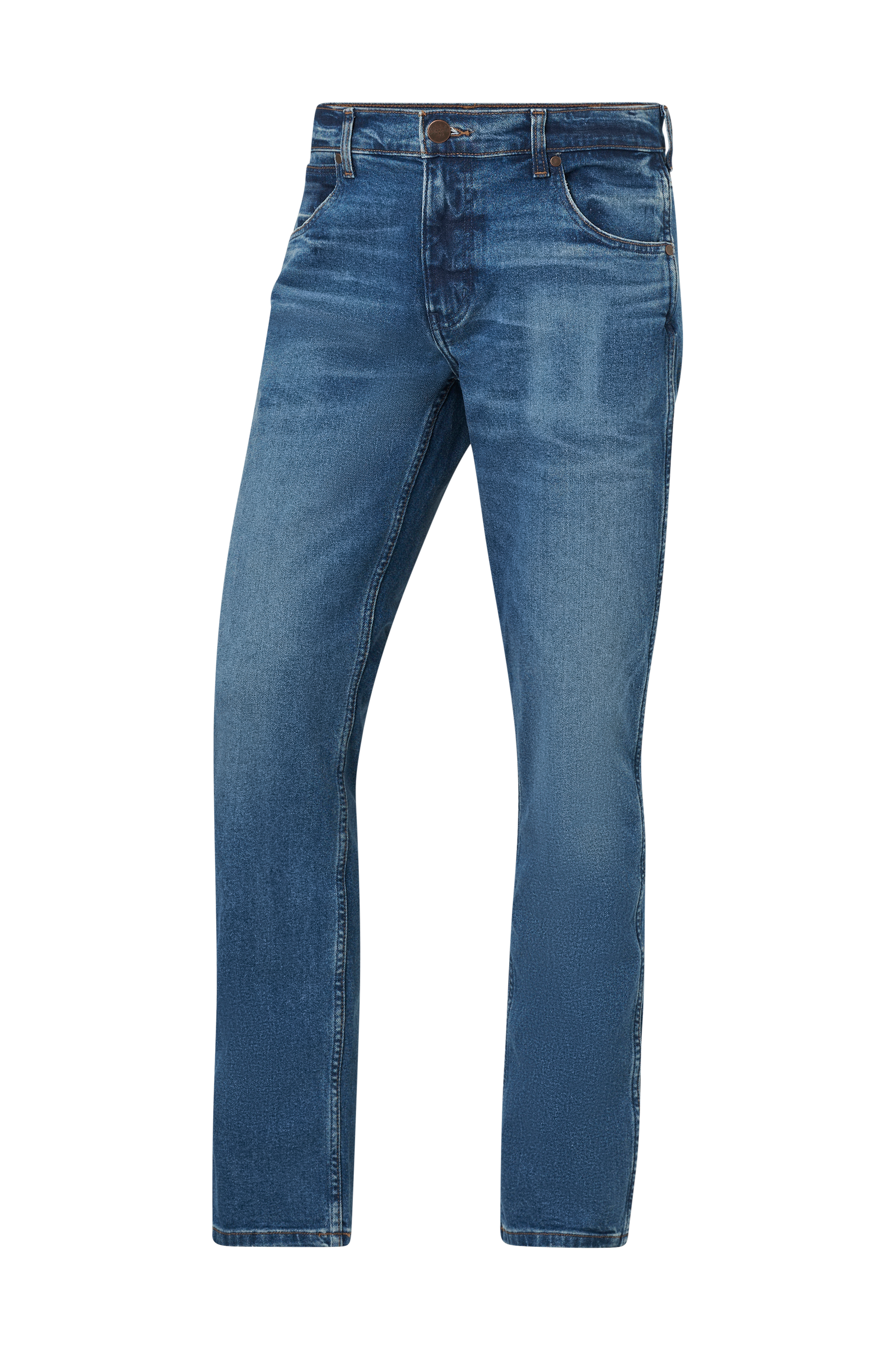 Jeans af stretchdenim med normalhøj talje og lige ben. 5-lommemodel med lynlås i gylpen.